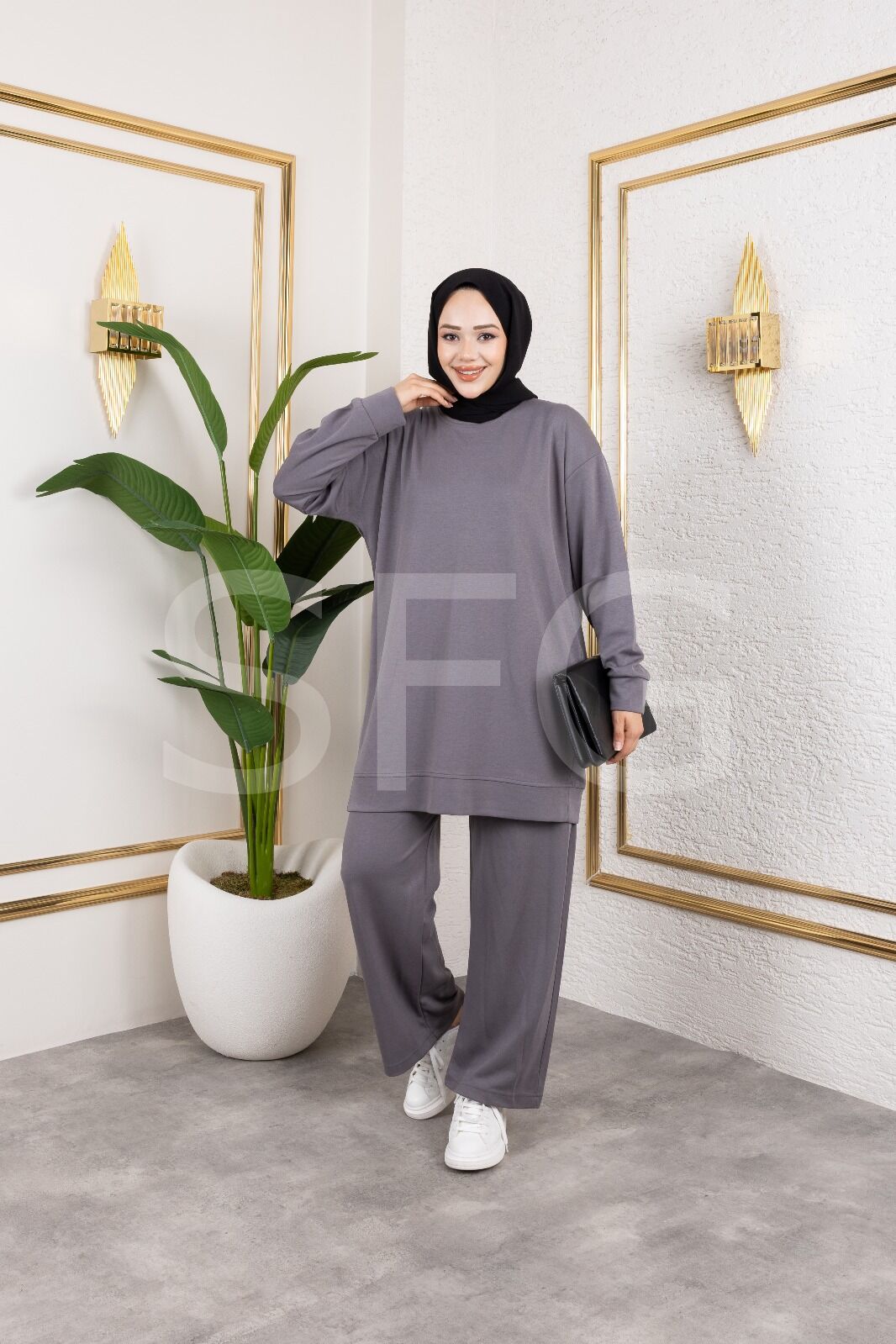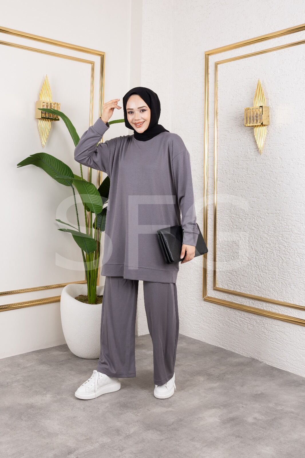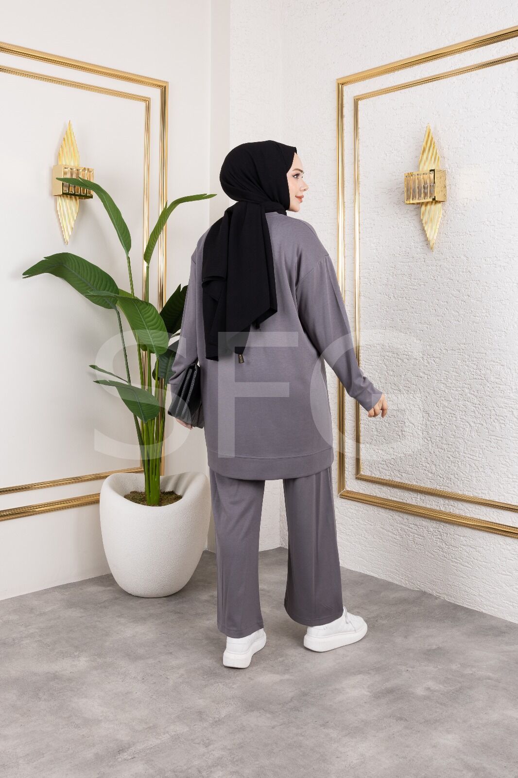 - Basic siluetiyle günlük kullanım için ideal, sade ve şık bir tasarıma sahip.; - Mono kapama şekli sayesinde kolayca giyilip çıkartılabilir ve pratik bir kullanım sunar.; - Düz kesimi ile her türlü vücut tipine uyum sağlar ve rahat bir oturuş sunar.; - Trend ortamlarda bile dikkat çeken, modern ve zamansız bir görünüm kazandırır.; - Sürdürülebilirlik detayına sahip malzemelerle doğaya duyarlı bir tercih yapmanızı sağlar.; - Beli lastikli yapısı ile konforlu bir kullanım sunarken, hareket özgürlüğünüzü kısıtlamaz.; - Astarsız tasarımı hafifliği arttırarak yaz aylarında bile rahatlıkla tercih edilebilir.; - Uzun kollu ve geniş paça detaylarıyla hem şıklığı hem de rahatlığı bir arada sunar.; - Yumuşak dokuma tipiyle cildinize nazik bir dokunuş sağlar ve uzun süreli konfor sunar.; - Normal bel kesimi ile vücut hatlarınıza uyum sağlayarak dengeli bir görünüm kazandırır.; - İki parçadan oluşan set içeriğiyle tunik ve pantolon olarak kombin yapma