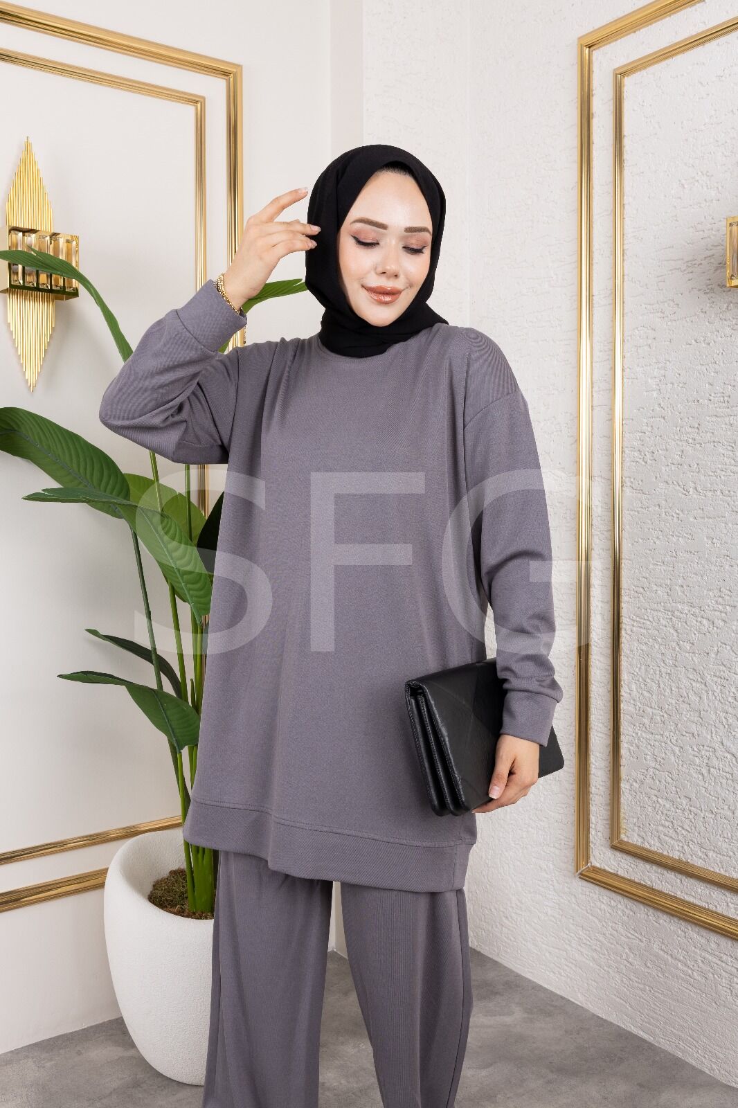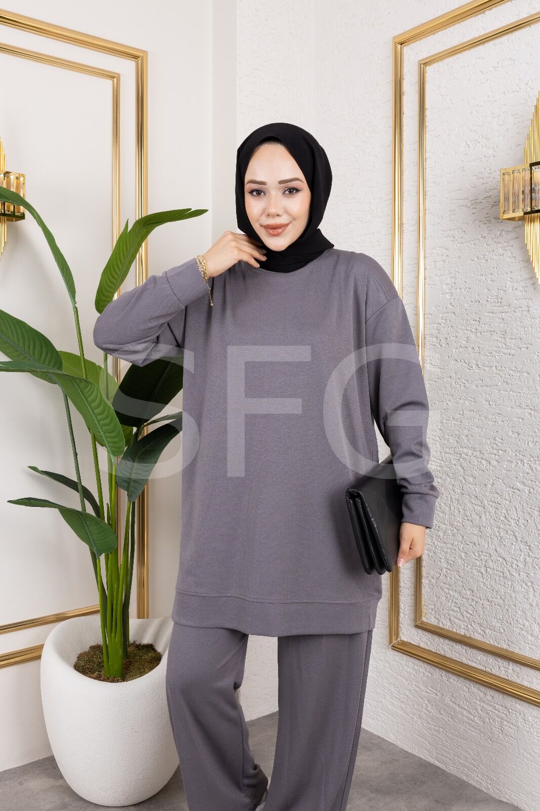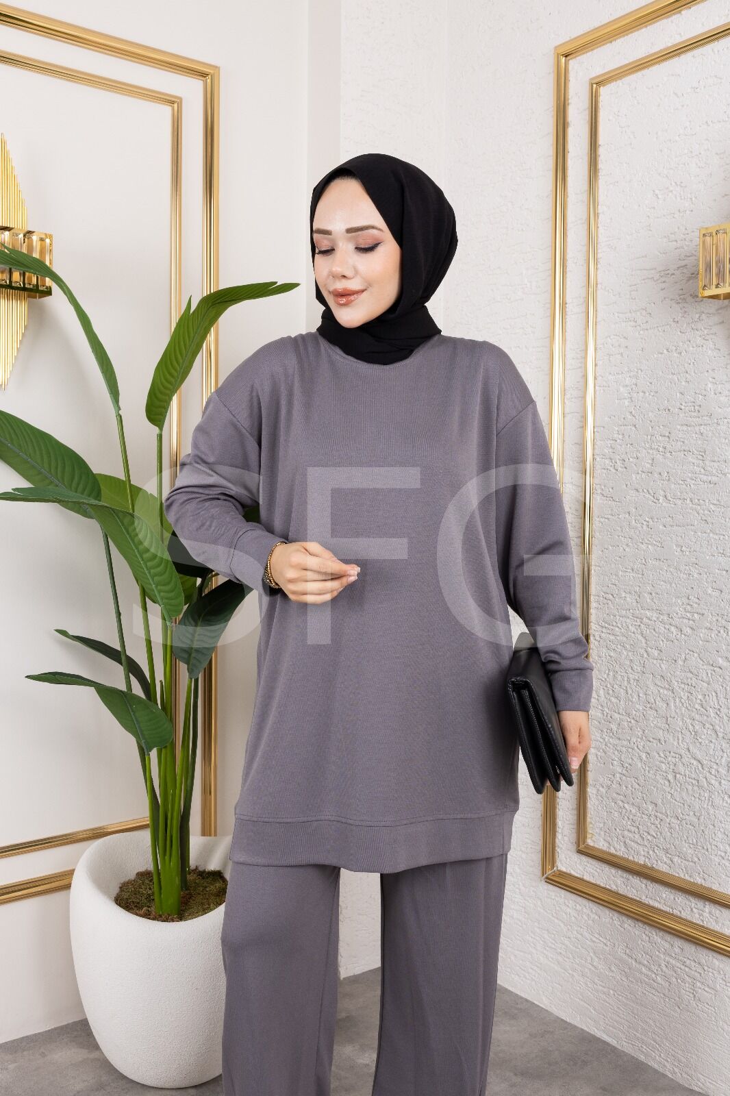 - Basic siluetiyle günlük kullanım için ideal, sade ve şık bir tasarıma sahip.; - Mono kapama şekli sayesinde kolayca giyilip çıkartılabilir ve pratik bir kullanım sunar.; - Düz kesimi ile her türlü vücut tipine uyum sağlar ve rahat bir oturuş sunar.; - Trend ortamlarda bile dikkat çeken, modern ve zamansız bir görünüm kazandırır.; - Sürdürülebilirlik detayına sahip malzemelerle doğaya duyarlı bir tercih yapmanızı sağlar.; - Beli lastikli yapısı ile konforlu bir kullanım sunarken, hareket özgürlüğünüzü kısıtlamaz.; - Astarsız tasarımı hafifliği arttırarak yaz aylarında bile rahatlıkla tercih edilebilir.; - Uzun kollu ve geniş paça detaylarıyla hem şıklığı hem de rahatlığı bir arada sunar.; - Yumuşak dokuma tipiyle cildinize nazik bir dokunuş sağlar ve uzun süreli konfor sunar.; - Normal bel kesimi ile vücut hatlarınıza uyum sağlayarak dengeli bir görünüm kazandırır.; - İki parçadan oluşan set içeriğiyle tunik ve pantolon olarak kombin yapma