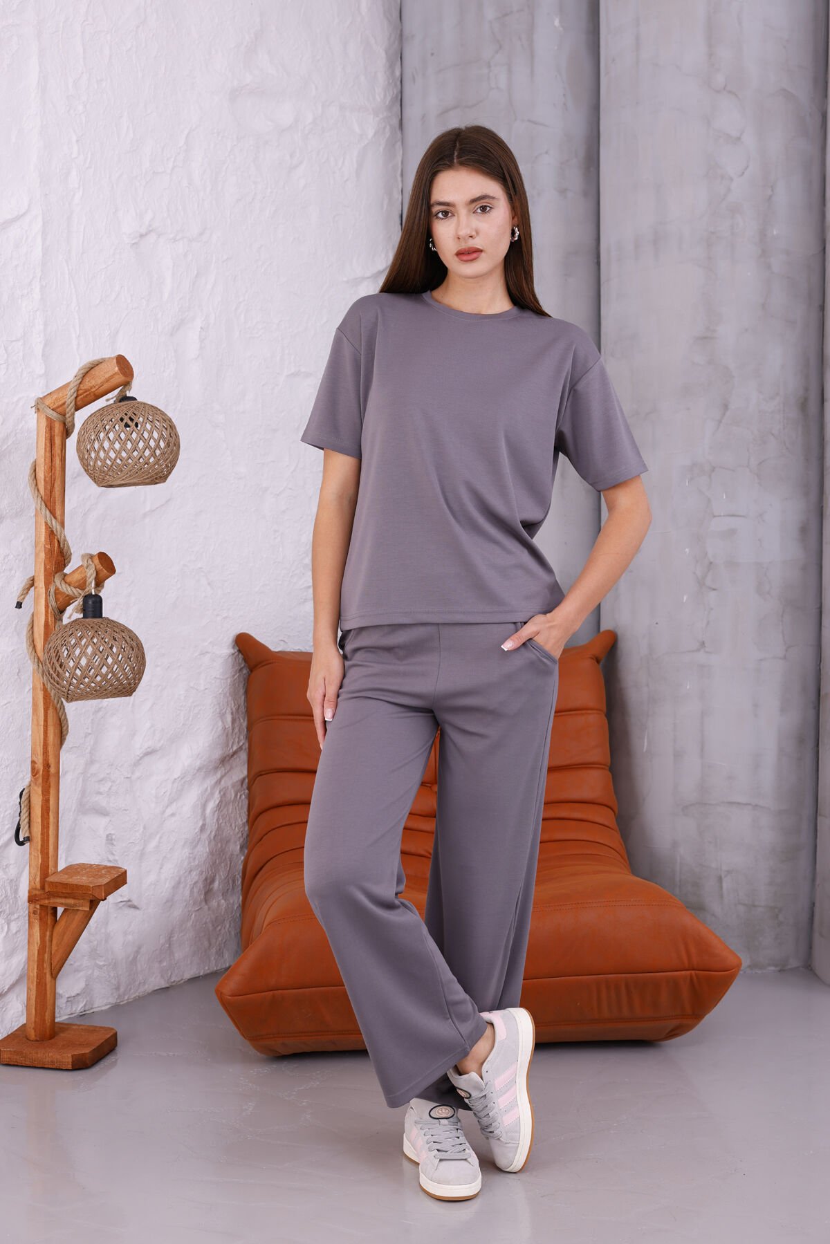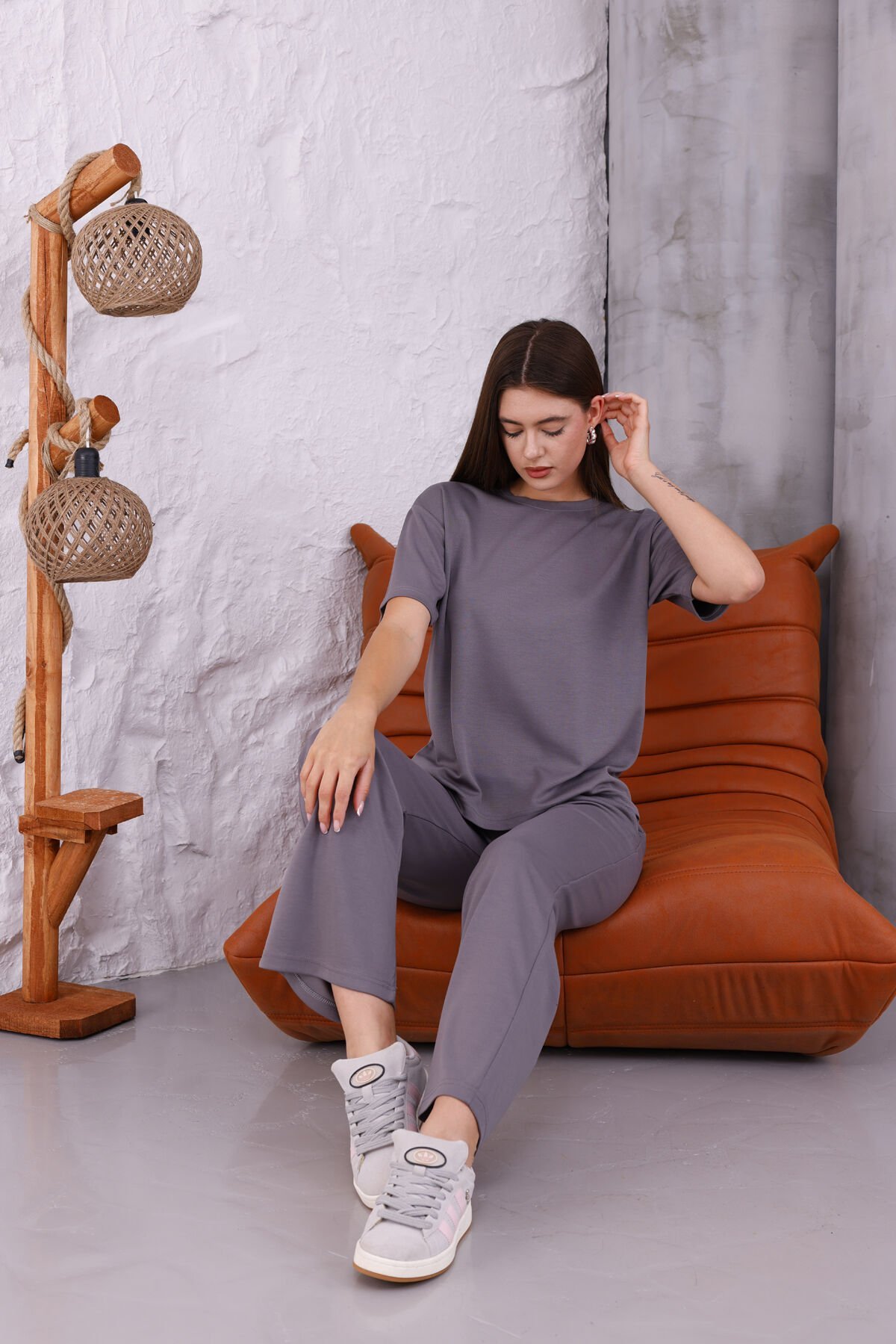 Kadın Bisiklet Yaka Ve Likralı Yüsek Bel İkili Penye Alt-üst Takım (4 ADET)
