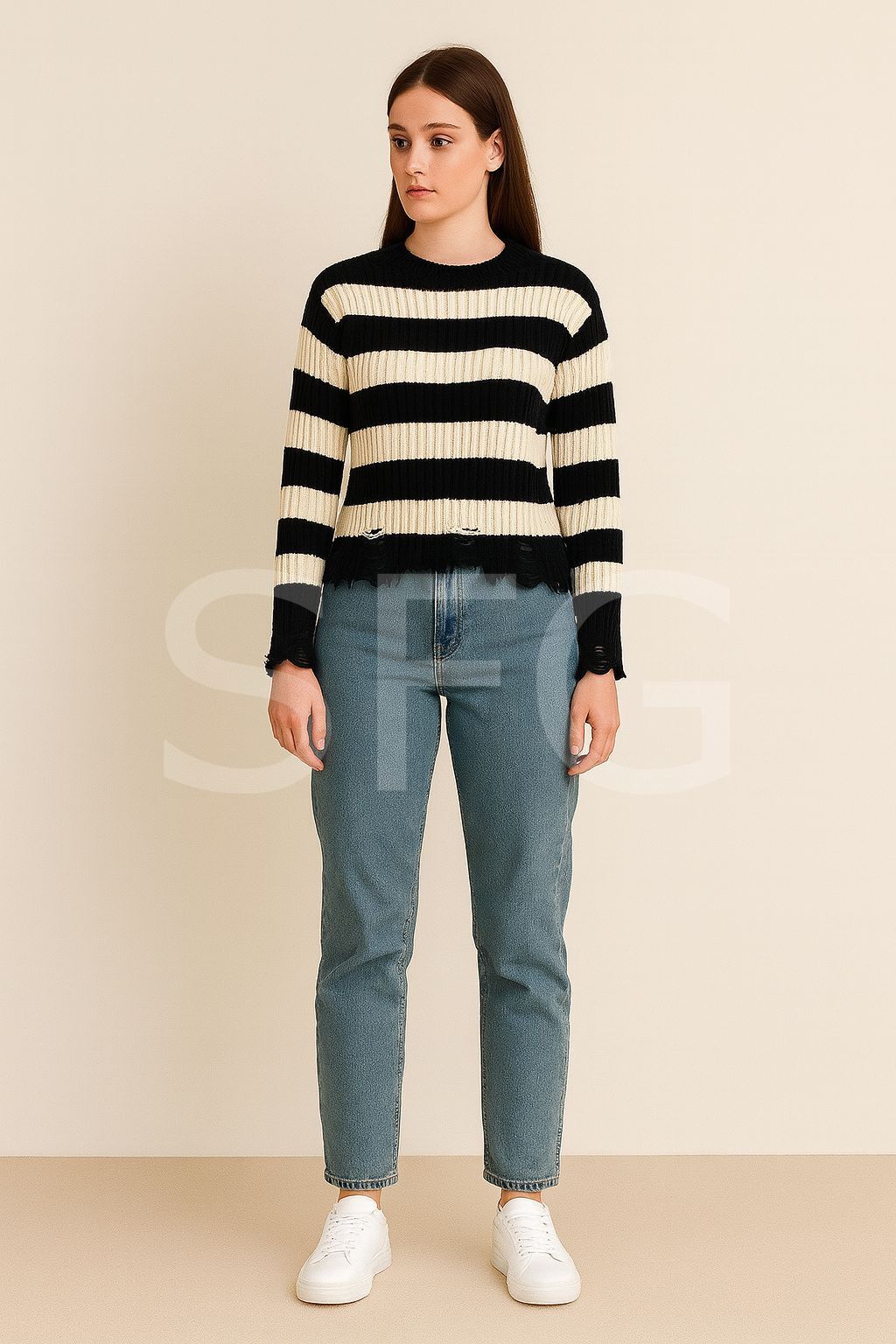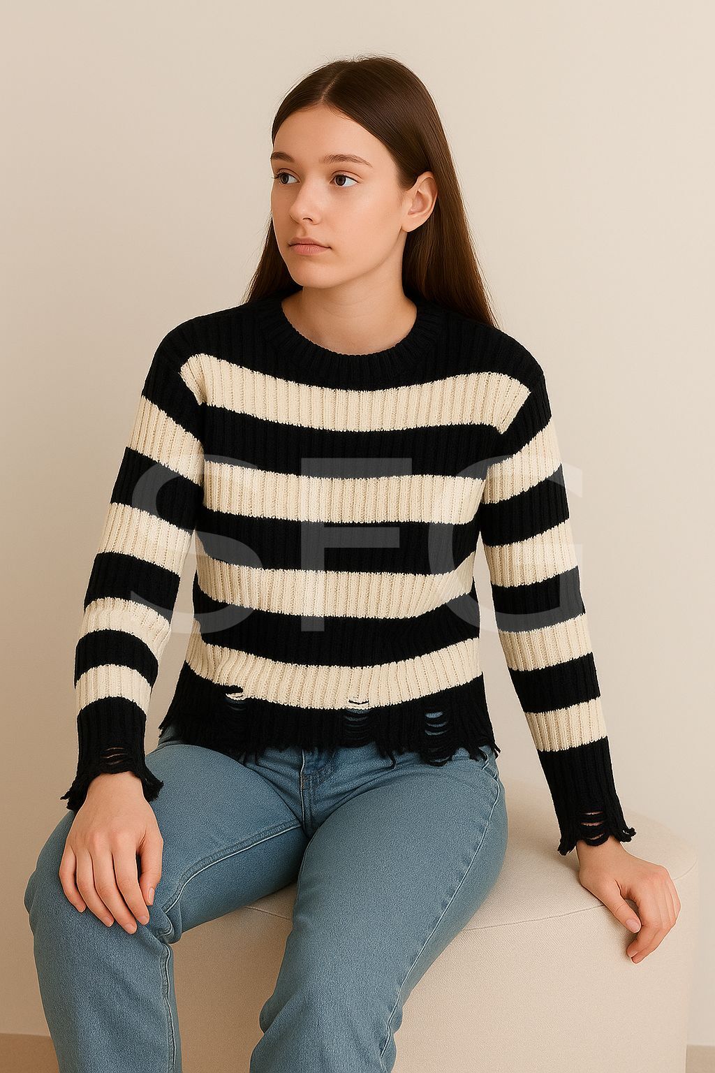 - Çizgili deseniyle modern ve şık bir görünüm sunar.; - Yırtık detayları ile dikkat çekici bir stil oluşturur.; - Akrilik materyal kullanımı sayesinde yumuşak dokunuşu ve konforlu bir kullanım sağlar.; - Günlük kullanım için ideal, basic koleksiyonun parçası olarak her gardıropta yerini alır.; - Orta kalınlıkta örgü dokuması ile mevsim geçişlerinde ideal sıcaklık sunar.; - Kemersiz tasarımı sayesinde rahat hareket etme özgürlüğü verir.; - Cepsiz yapısıyla minimalist ve sade bir görünüm kazandırır.; - Basic silueti ile her tür alt giyimle kolayca kombinlenebilir.; - Yuvarlak yaka tipi, klasik ve zamansız bir stil sunarken cool & comfort persona'yı yansıtır.; - Tüylenmez ek özelliği ile uzun süreli kullanım için dayanıklılık vaat eder.; - Kış sezonuna uygun olarak tasarlanmıştır; soğuk havalarda sıcak tutar.; - Uzun kol boyu, kolların tamamen kaplanmasını sağlayarak soğuktan koruma
