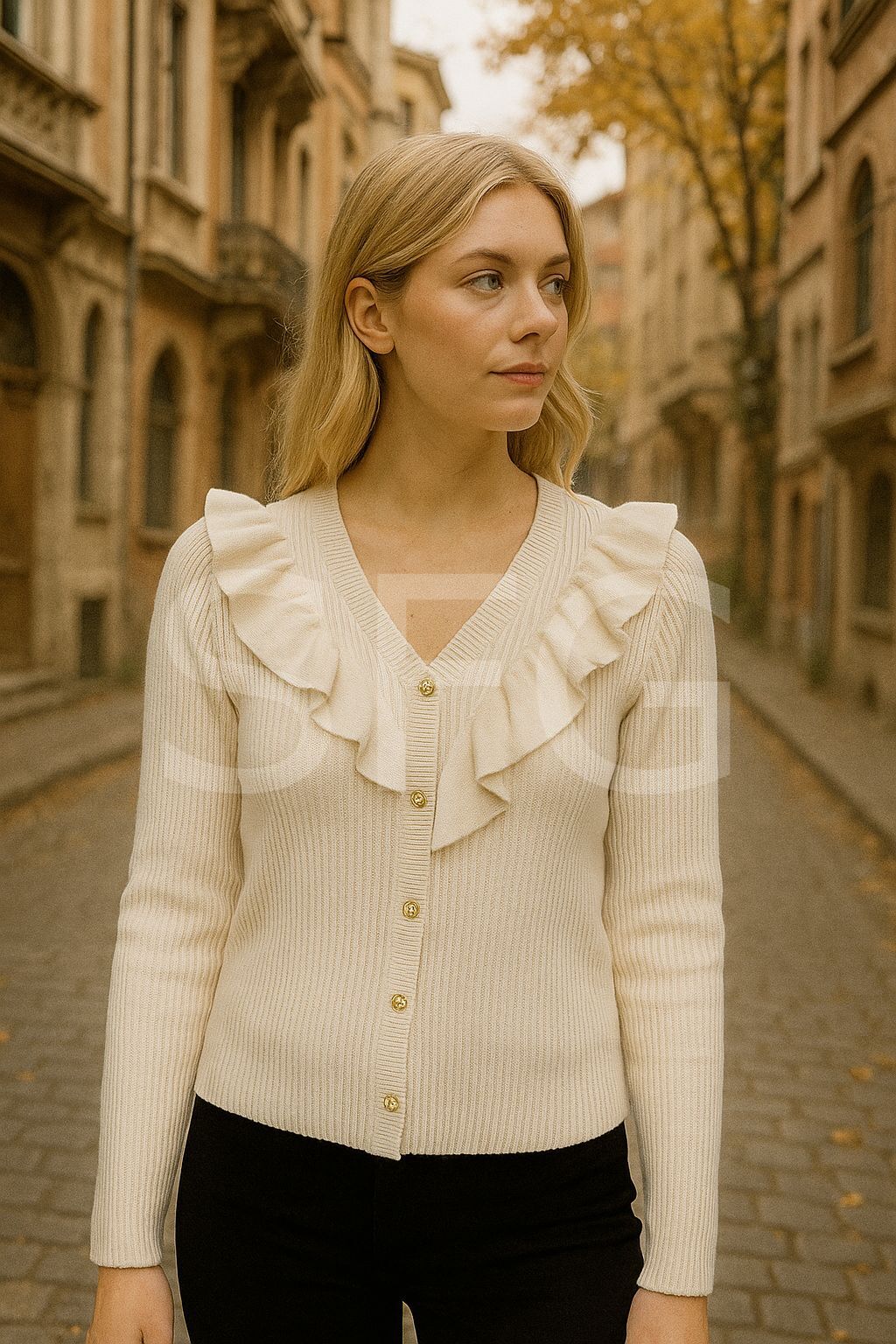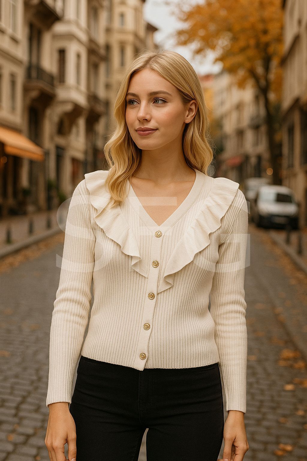 - Uzun kollu tasarımı ile kış aylarında sıcak tutar ve şıklığınızdan ödün vermezsiniz. - Sürdürülebilir materyaller kullanılarak üretilmiş olup, çevre dostu bir tercih sunar. - Düğme detayları ile hem klasik hem de modern bir görünüm sağlar. - Slim silueti sayesinde vücut hatlarınıza mükemmel uyum sağlayarak zarif bir duruş sergiler. - Smart/Office persona ile iş ortamında da günlük kullanımda da rahatlıkla tercih edilebilir. - Trend ortamlarda dikkat çekici bir stil oluşturmanızı sağlar. - Cepsiz tasarımı ile minimalist ve sade bir görünüm kazandırır. - Orta kalınlıkta triko kumaşı, soğuk havalarda ideal konforu sunarken stilinizi de korur. - V yaka detayı ile boynunuzu zarifçe gösterirken, crop fit kalıbı modern ve genç bir görünüm kazandırır. - Kemersiz tasarımı sayesinde hareket özgürlüğünüzü kısıtlamaz ve rahatlık sağlar. - Baskısız düz deseniyle zamansız bir şıklık sunarken, fitilli dokuma tipiyle kaliteyi hissedersiniz. - Basic koleksiyonun sadeliğiyle her gard