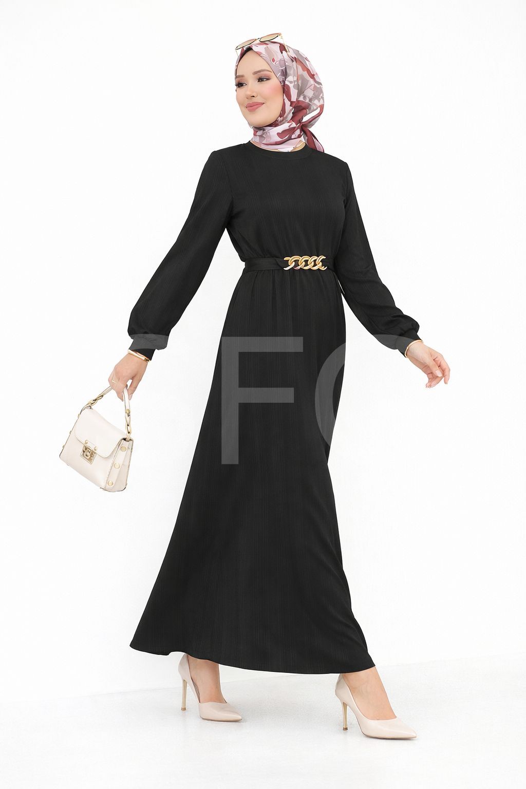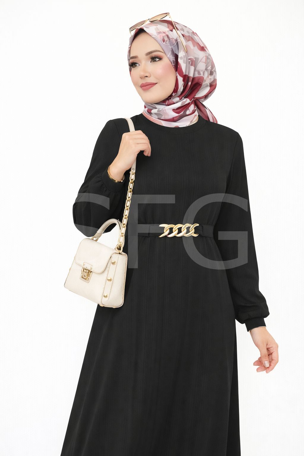 - Zarif gold zincir kemer detaylarıyla dikkat çeken bu elbise, şıklığınızı tamamlayacak.; - Bisiklet yaka tasarımı ile modern ve rahat bir görünüm sunar.; - Uzun kollu yapısı sayesinde mevsim geçişlerinde ideal bir seçimdir.; - Düz deseniyle sade ve zamansız bir stil oluşturur.; - Cepsiz tasarımı, minimalist ve şık bir siluet sağlar.; - Cool & Comfort persona'sı ile hem rahat hem de trend bir görünüm elde edersiniz.; - Baskısız yapısı, elbisenin sade güzelliğini ön plana çıkarır.; - Piliseli silueti ile feminen ve dinamik bir hava katar.; - Astarsız ve kapsız olması, hafif ve konforlu bir kullanım sunar.; - Kutu içeriği 1+ olarak belirtilmiş olup, ekstra parçalarla kombin yapma imkanı tanır.; - Basic koleksiyonun bir parçası olarak her gardıropta yerini almayı hak eder.; - Kapamasız tasarımı sayesinde kolayca giyilip çıkarılabilir.; - Sürdürülebilirlik detayına sahip olması, çevre dostu bir tercih yapmanızı sağlar.; - Tüm sezonlar için uygun olan bu elbise, yılın her döneminde stilinizi korumanıza yardımcı olur.; - Genç yaş grubuna hitap eden tasarımıyla dinamik ve enerjik bir görünüm sunar.; - Türkiye'de üretilmiş olması, yerel üretim desteklenmiş anlamına gelir.; - Uzun boyu ile zarif ve etkileyici bir duruş sergiler.; - Comfort kalıbı sayesinde gün boyu rahat hareket etme olanağı sağlar.