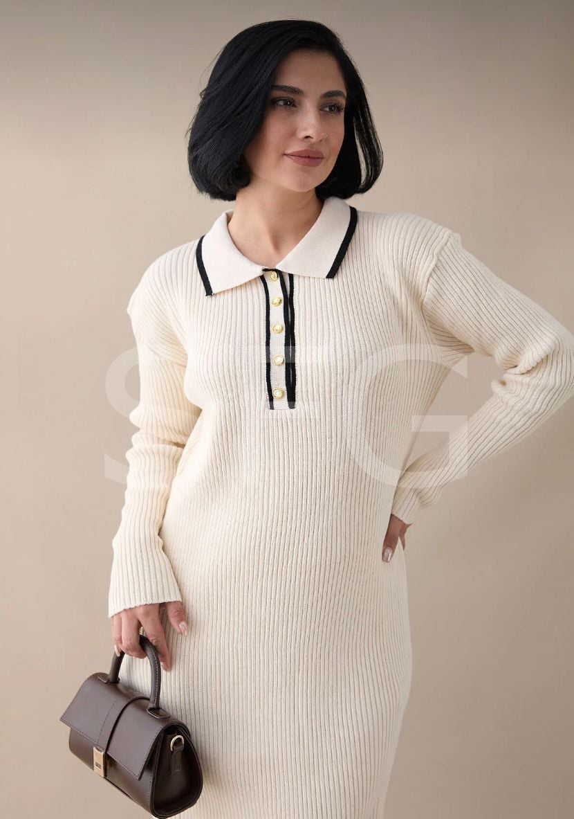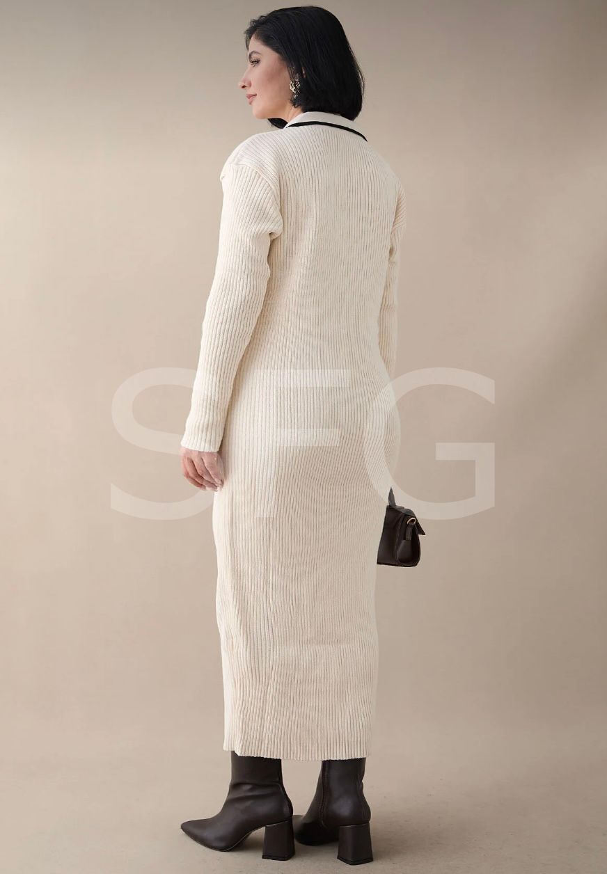 Kadın Gömlek Yaka ve Biyeli Triko Fitilli Elbise (2'lü)