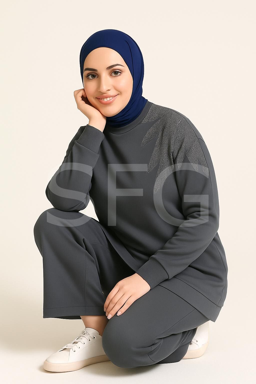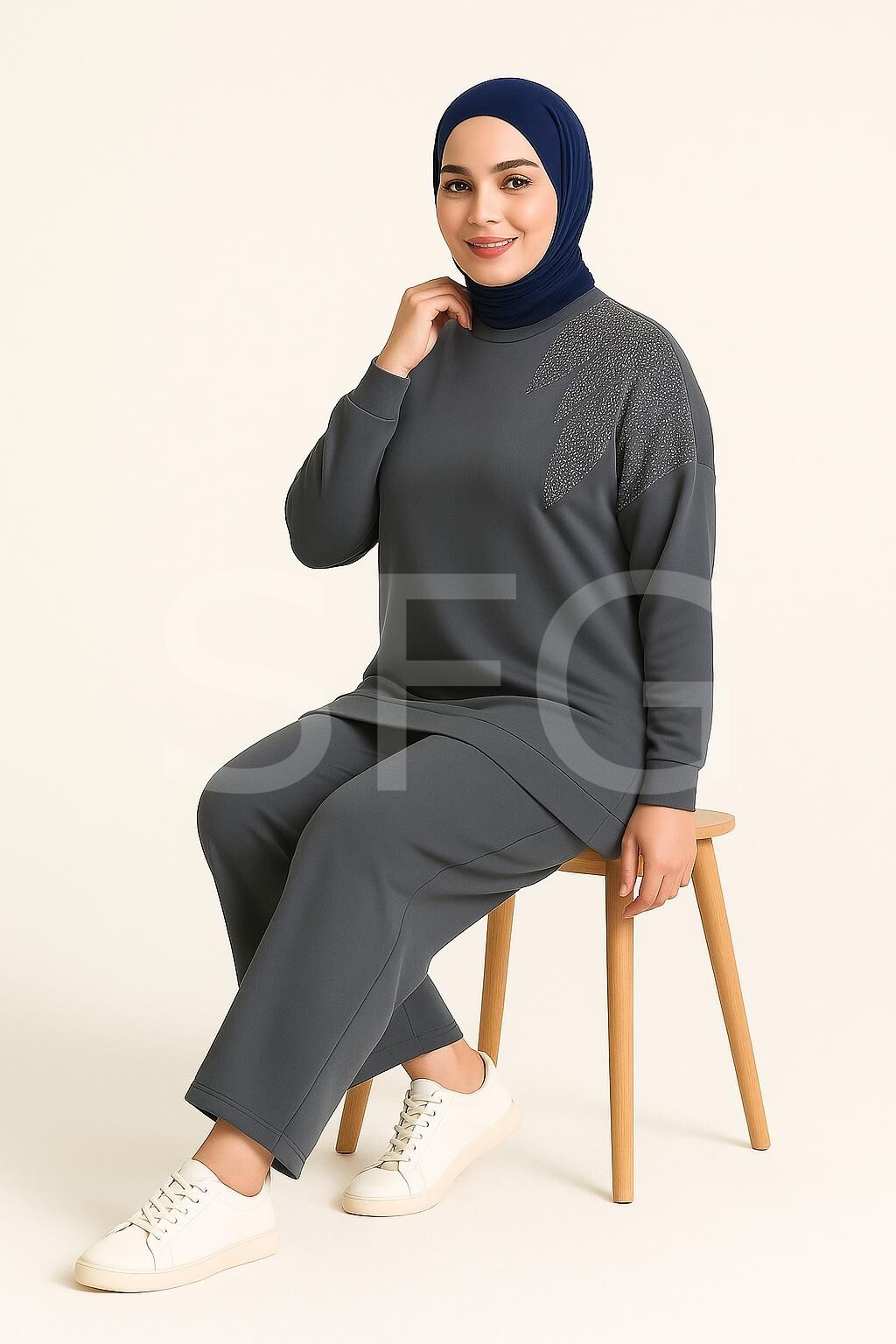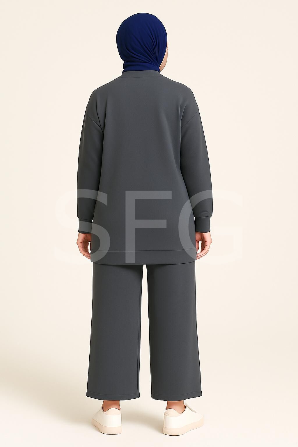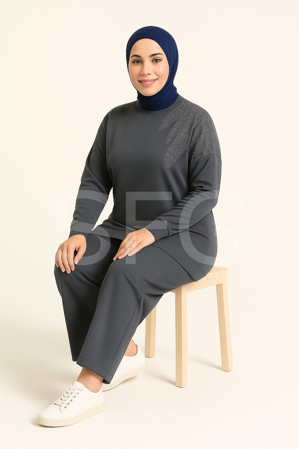 Kadın Lacivert Tesettür Giyim Zarif Taş Detaylı Tunik & Pantolon İkili Takım ( 4'LÜ )