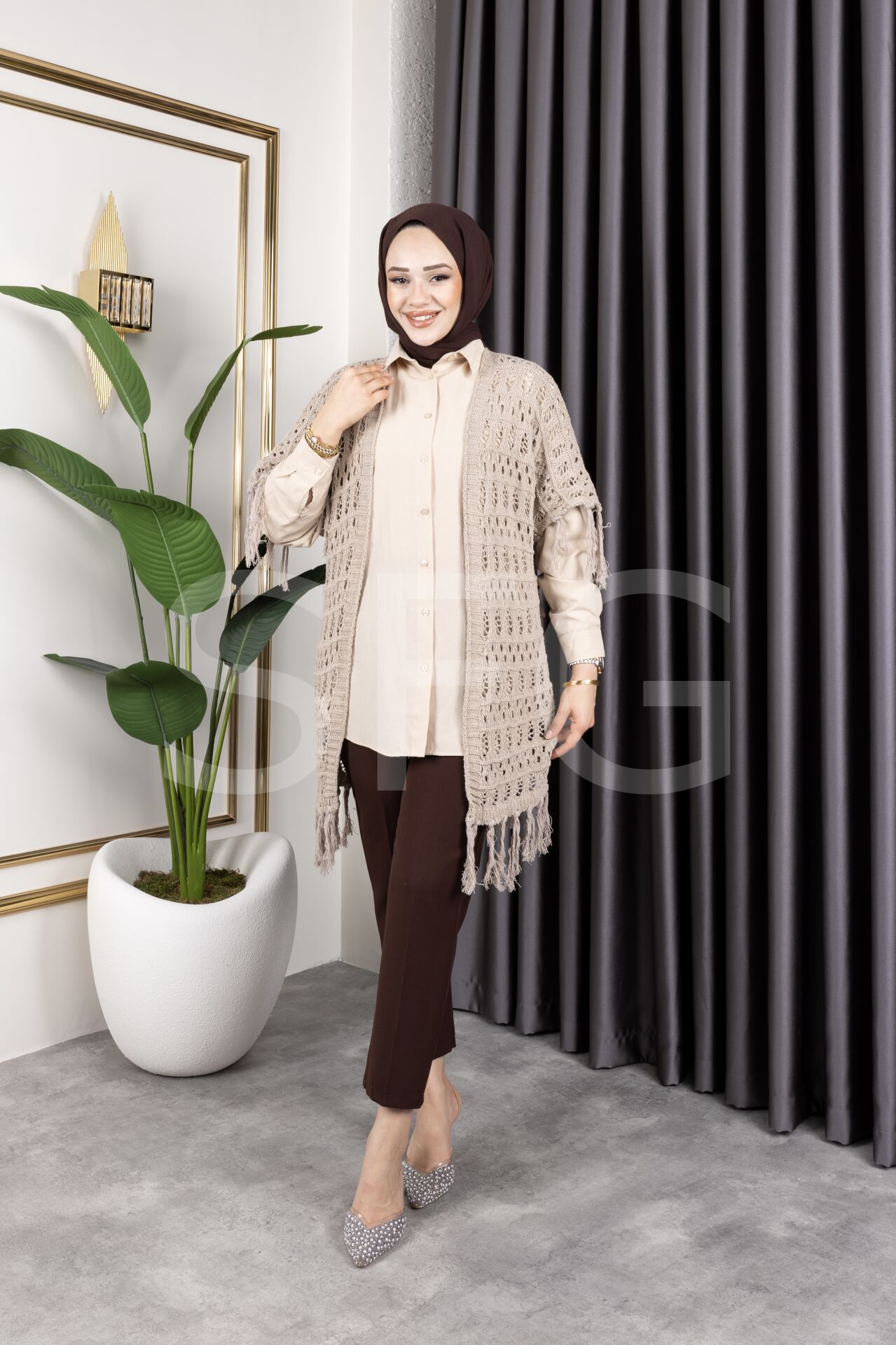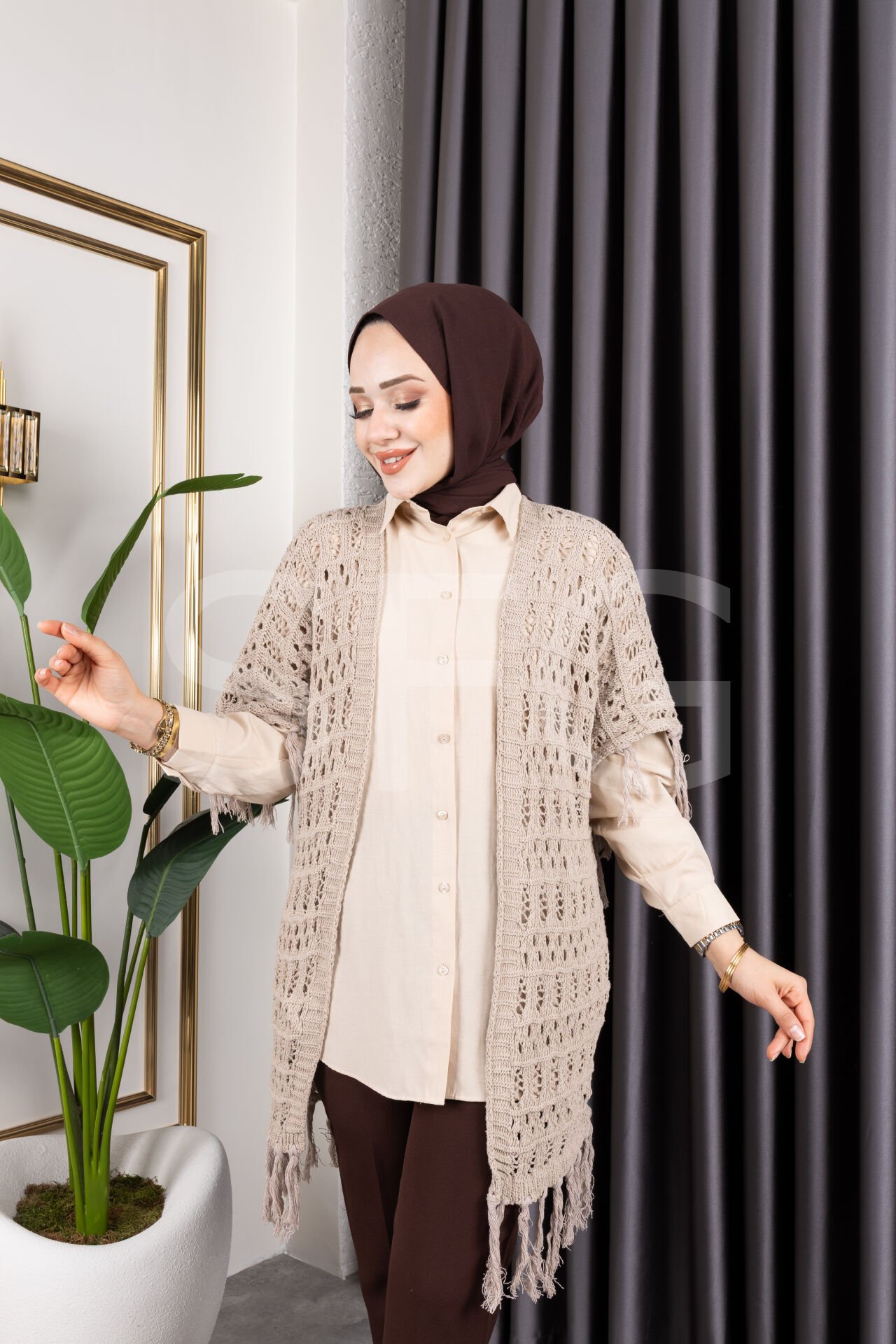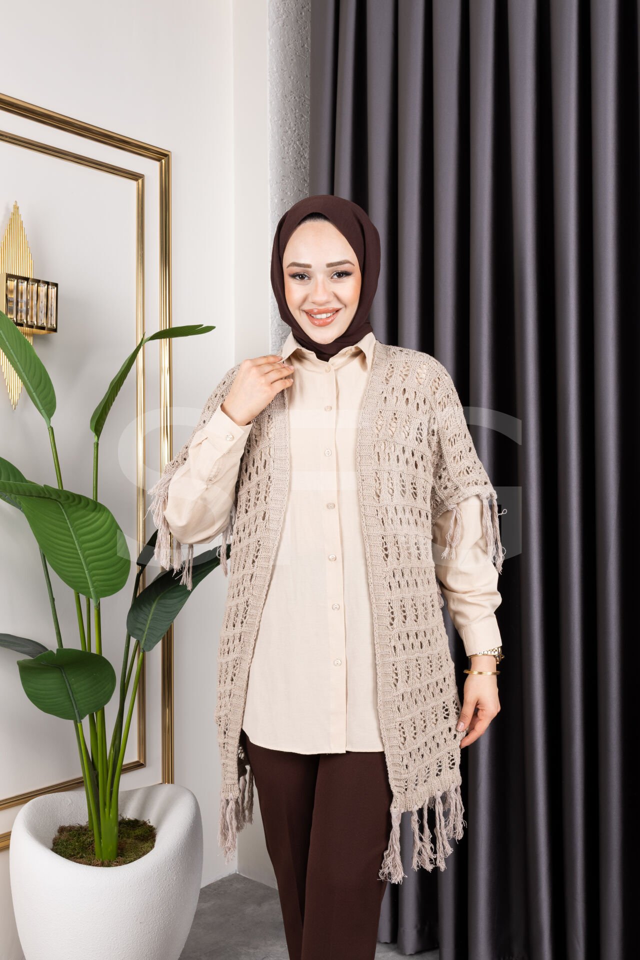 - %100 pamuk materyali ile üretilmiş, cildinize nefes aldıran ve gün boyu konfor sunan bir hırka.; - Mevsim geçişlerinde ideal kullanım sağlayan orta kalınlıkta örgü dokusuyla sıcak tutar.; - Trend bir görünüm kazandıran saçaklı detayları ve ajurlu deseniyle stil sahibi kombinlerin vazgeçilmezi.; - Kemersiz tasarımı sayesinde rahat bir kullanım sunarken, püskül detaylarıyla şık bir dokunuş katıyor.; - Baskısız baskı teknolojisiyle sade ve zamansız bir tarz yaratırken, plaj tekstil koleksiyonunun parçası olarak yazlık gardırobunuzda yerini alıyor.; - Kolay bakım imkanı sağlayan maksimum 30 derecede yıkama talimatına uygun şekilde temizlenebilir.; - Cepsiz yapısıyla minimalist bir görünüm sergileyen bu hırka, günlük kullanım için idealdir.; - Tüylenmeye karşı dayanıklı kumaşı sayesinde uzun süre ilk günkü gibi kalır ve formunu korur.; - Genç yaş grubuna hitap eden dinamik tasarım anlayışıyla genç kadınların enerjisini yansıtır.; - Standart kol tipiyle hareket özgürlüğünüzü kısıtlamadan konforlu bir deneyim sağlar.; - Kapamasız yapısıyla modern ve minimalist çizgiler taşıyan bu hırka, her tür alt giysiyle kolayca kombinlenebilir.; - Triko kumaşın sunduğu yumuşaklık ve dayanıklılıkla her mevsim tercih edilebilecek çok yönlü bir üründür.; - Türkiye'de üretilmiş olup kalite standartlarına uygun üretim sürecinden geçmiştir.; - Ajurlu deseniyle hafif ve ferah hissettiren bu hırka, yaz aylarında bile serin tutacak yapıdadır.; - Şal yakası sayesinde boynunuza zarif bir şekilde otururken aynı zamanda rahatlık sunar.; - Uzun kol boyu mevsimsel geçişlerde ideal koruma sağlarken, oversize kesimiyle trend bir siluet çizer.