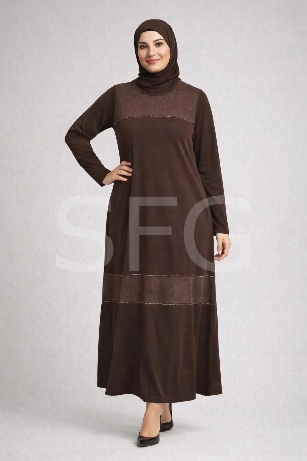 - Şık ve modern tasarımıyla her ortama uyum sağlayan, tesettür giyim koleksiyonunun vazgeçilmez parçası. - Ön kısmında yer alan taş detaylı desen, sade kahverengi tonuyla göz alıcı bir kontrast oluşturuyor. - Rahat ve özgür hareket imkanı sunan oversize kalıbı ile günlük kullanım için ideal. - Standart kol ve bisiklet yaka tasarımı, hem şıklığı hem de konforu bir arada sunuyor. - 2 iplik penye kumaşı sayesinde yumuşak dokusuyla gün boyu rahatlık sağlıyor. - Uzun boyu ve cepsiz tasarımı ile modern bir silüet oluşturuyor. - Tüm sezonlar için uygun, her mevsimde tercih edebileceğiniz çok yönlü bir parça. - Maksimum 30°C'de yıkanabilir olması pratik kullanım imkanı sunuyor. - Sürdürülebilir materyal kullanımı ile çevre dostu bir tercih. - Cool & Comfort persona'sını yansıtan, trend ve basic silüetiyle stil sahibi görünmenizi sağlar.