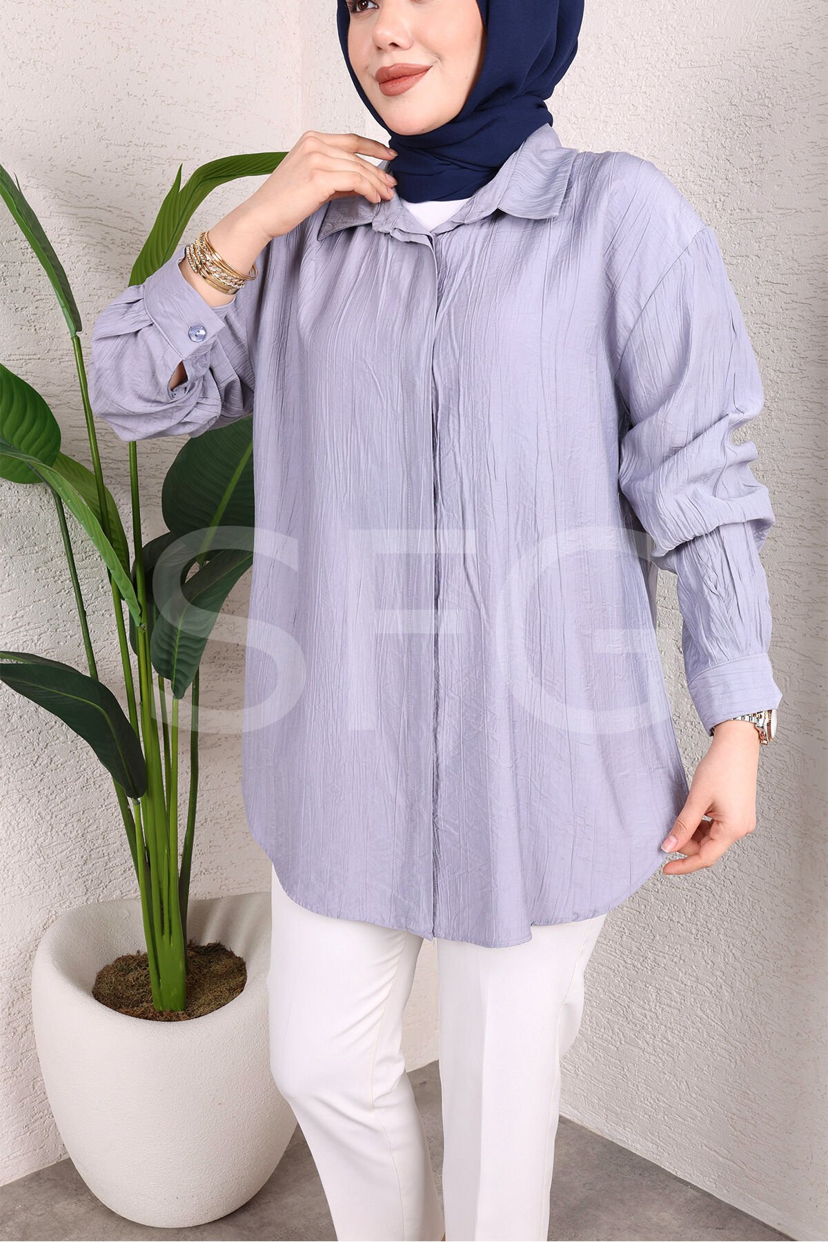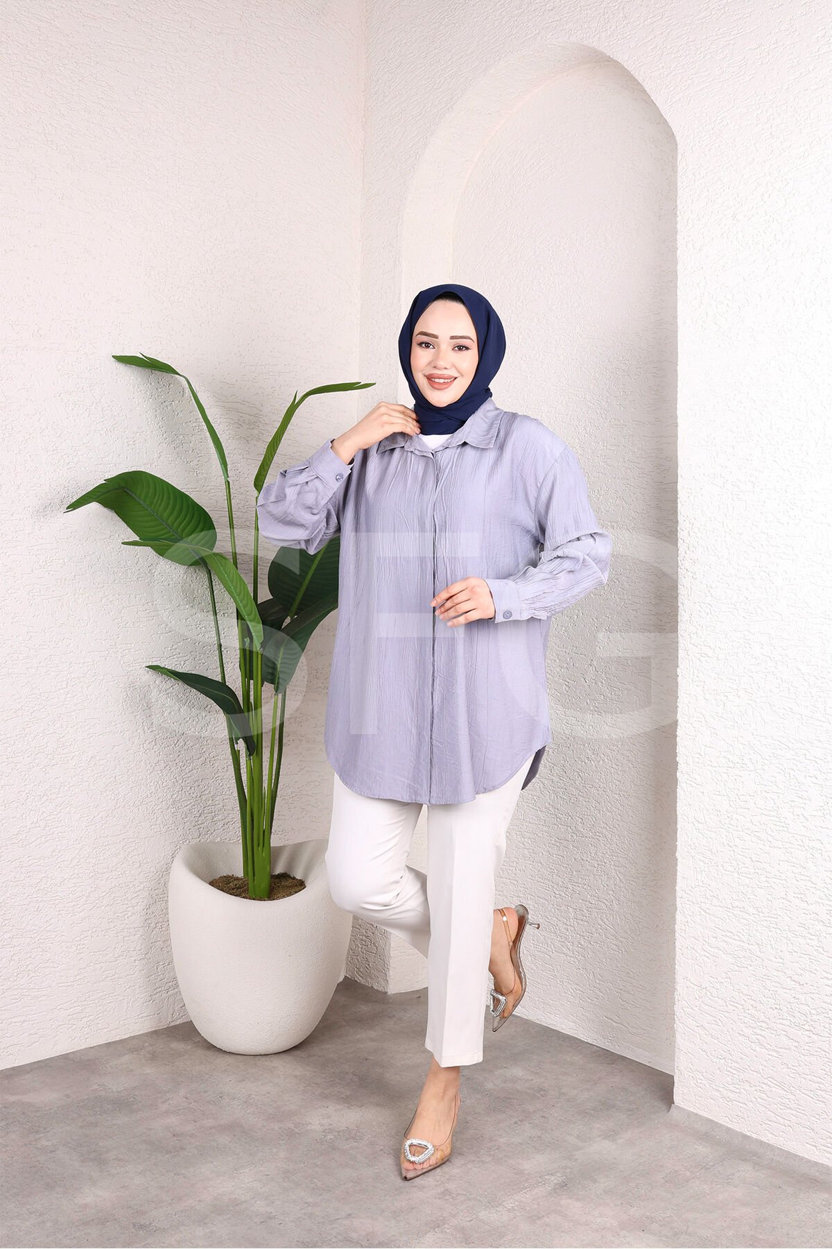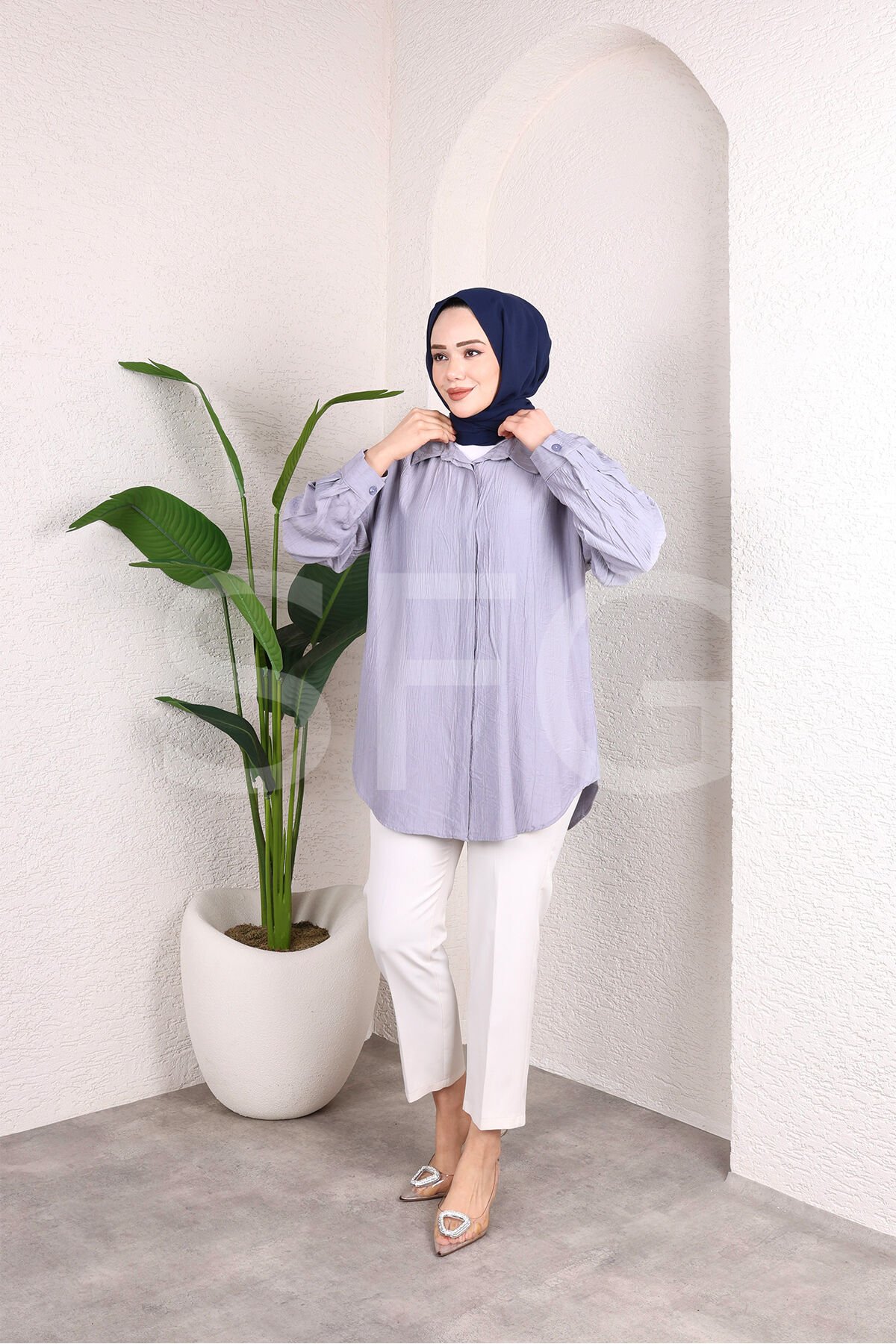 - Modern ve şık tasarımıyla dikkat çeken kadın tunik gömlek, düz kesimiyle rahat bir kullanım sunar.; - Önü düğmeli yapısı sayesinde kolayca giyilip çıkarılabilir ve şık bir görünüm sağlar.; - Uzun kollu ve gömlek yaka detaylarıyla hem günlük hem de özel günlerde tercih edilebilir.; - Orta boy kesimiyle farklı vücut tiplerine uyum sağlar ve rahat bir oturuş sunar.; - Keten kumaşı sayesinde yaz aylarında serinlik ve konfor sağlar.; - Tesettür giyim koleksiyonuna uygun olarak tasarlanmıştır, şık ve zarif bir görünüm sunar.; - Düz deseni ve baskısız yapısıyla sade ve zamansız bir tarz yaratır.; - Cepsiz tasarımı ile minimalist bir görünüm elde edilirken, kemersiz yapısıyla da hareket özgürlüğü sunar.; - Düğmeli detayları ve düz kesimiyle trend ortamlarda rahatlıkla tercih edilebilir.; - Sürdürülebilirlik detayına sahip olması, çevre dostu bir seçim yapmanızı sağlar.;