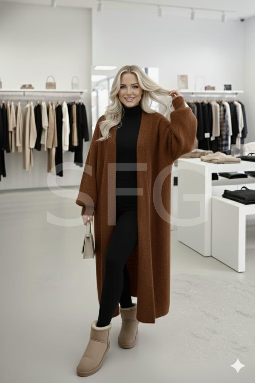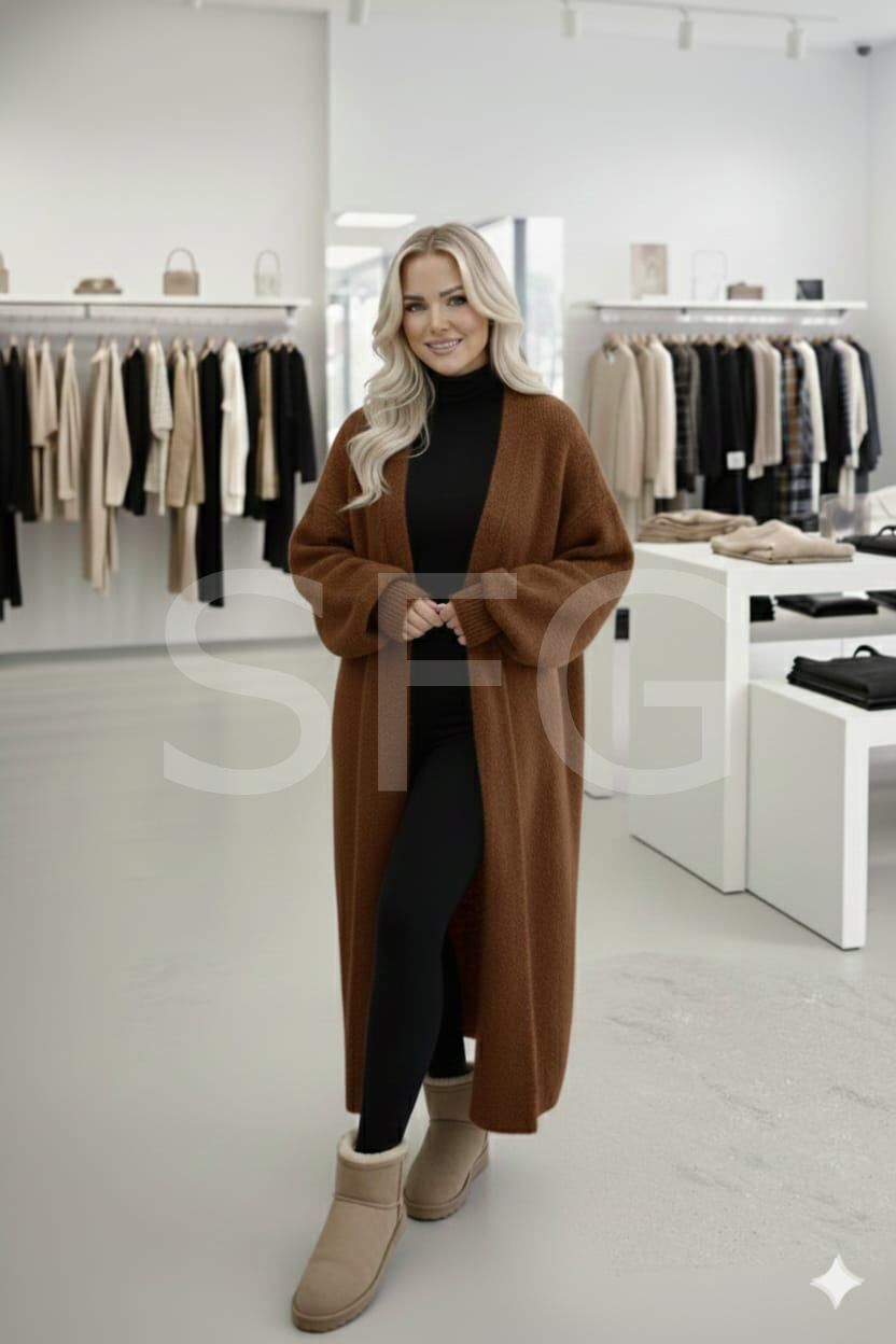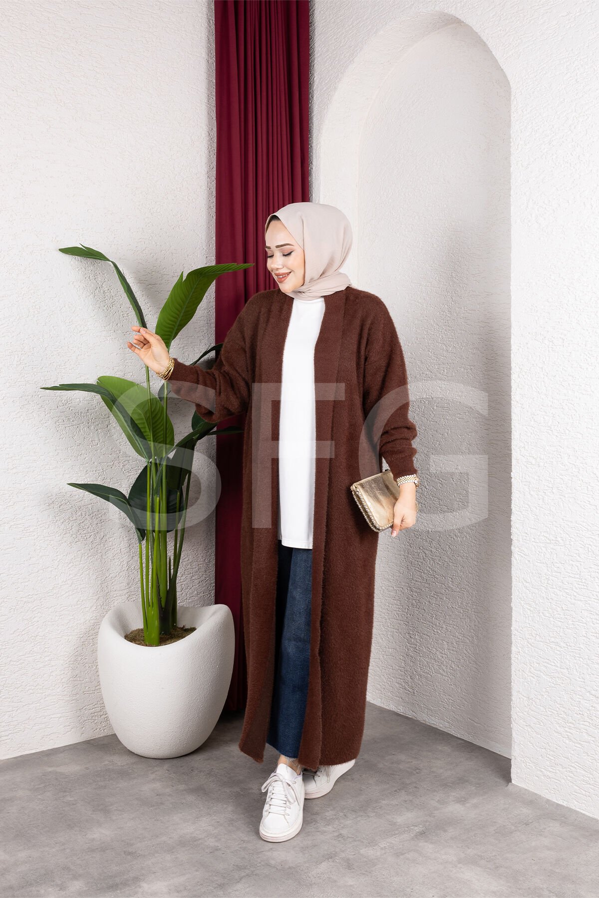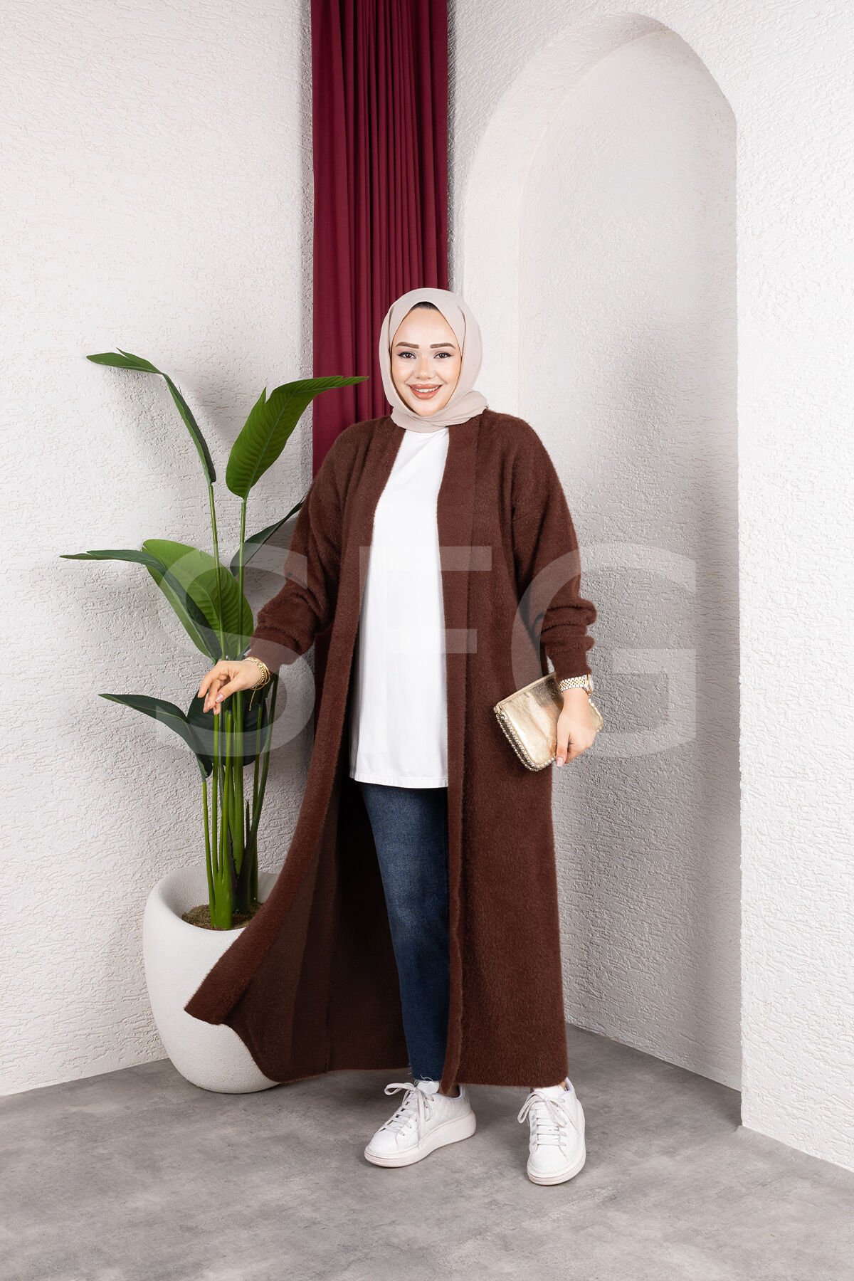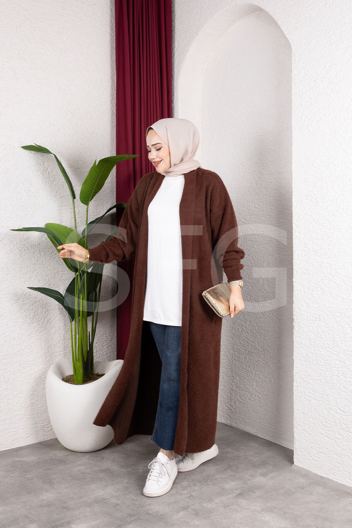 - Şal yaka tasarımı ile modern ve şık bir görünüm sunar.; - Oversize kesimi sayesinde rahat hareket etme özgürlüğü sağlar.; - Uzun kollu yapısı ile mevsim geçişlerinde ideal sıcaklık dengesi sunar.; - Düz deseniyle sade ve zamansız bir stil oluşturur.; - Orta kalınlıkta triko kumaşı, mevsimlik kullanım için uygundur.; - Cepsiz tasarımı, minimalist bir görünüm kazandırırken pratiklikten ödün vermez.; - Baskısız yapısıyla sade ve şık bir duruş sergiler.; - Tesettür giyim koleksiyonuna özel olarak tasarlanmıştır.; - Tüylenmez özelliği ile uzun süreli kullanım için idealdir.; - İpliği boyalı materyali sayesinde canlı renkleri uzun süre korur.; - Sürdürülebilir materyal kullanımı çevre dostu bir tercih sunar.; - Cool & Comfort persona'ya hitap eden rahat siluetiyle günlük kullanım için uygundur.; - Panço silueti ile modern ve trend bir görünüm sağlar.; - Tek parça olarak sunulan bu hırka, kolay kombin yapma imkanı tanır.; - Yün, akrilik ve polyester karışımından oluşan materyali hem