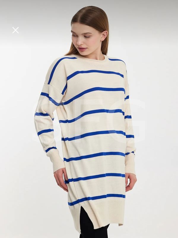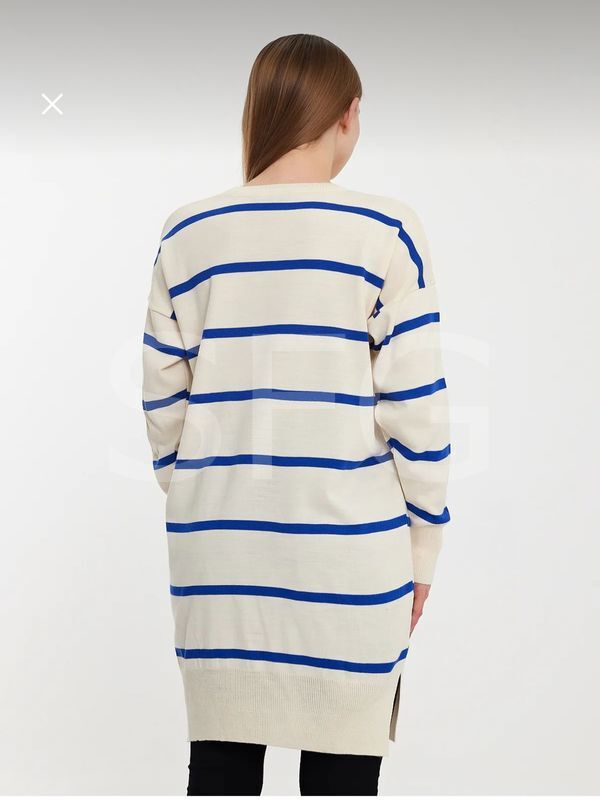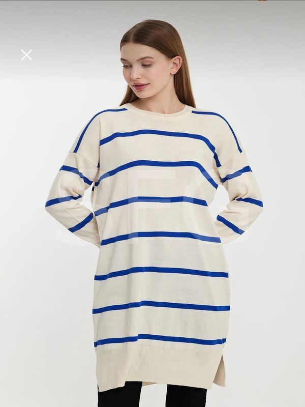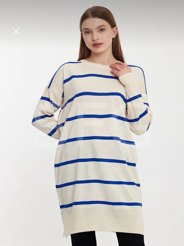 Kadın Tesettür Giyim Bisiklet Yaka Eteği Yırtmaçlı Tek Plaka Merserize Önü Çizgili Salaş Triko Tunik (2'Lİ)
