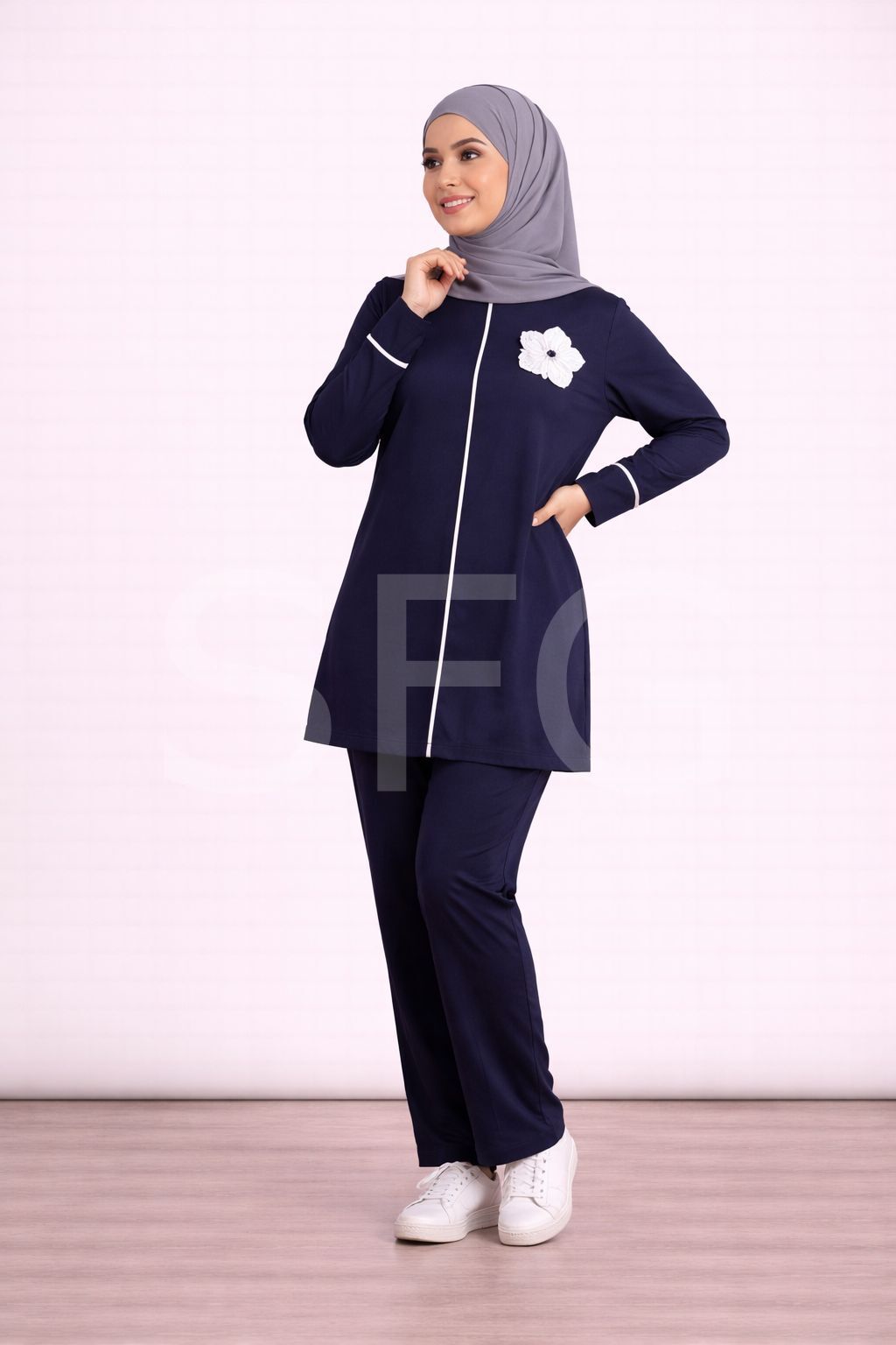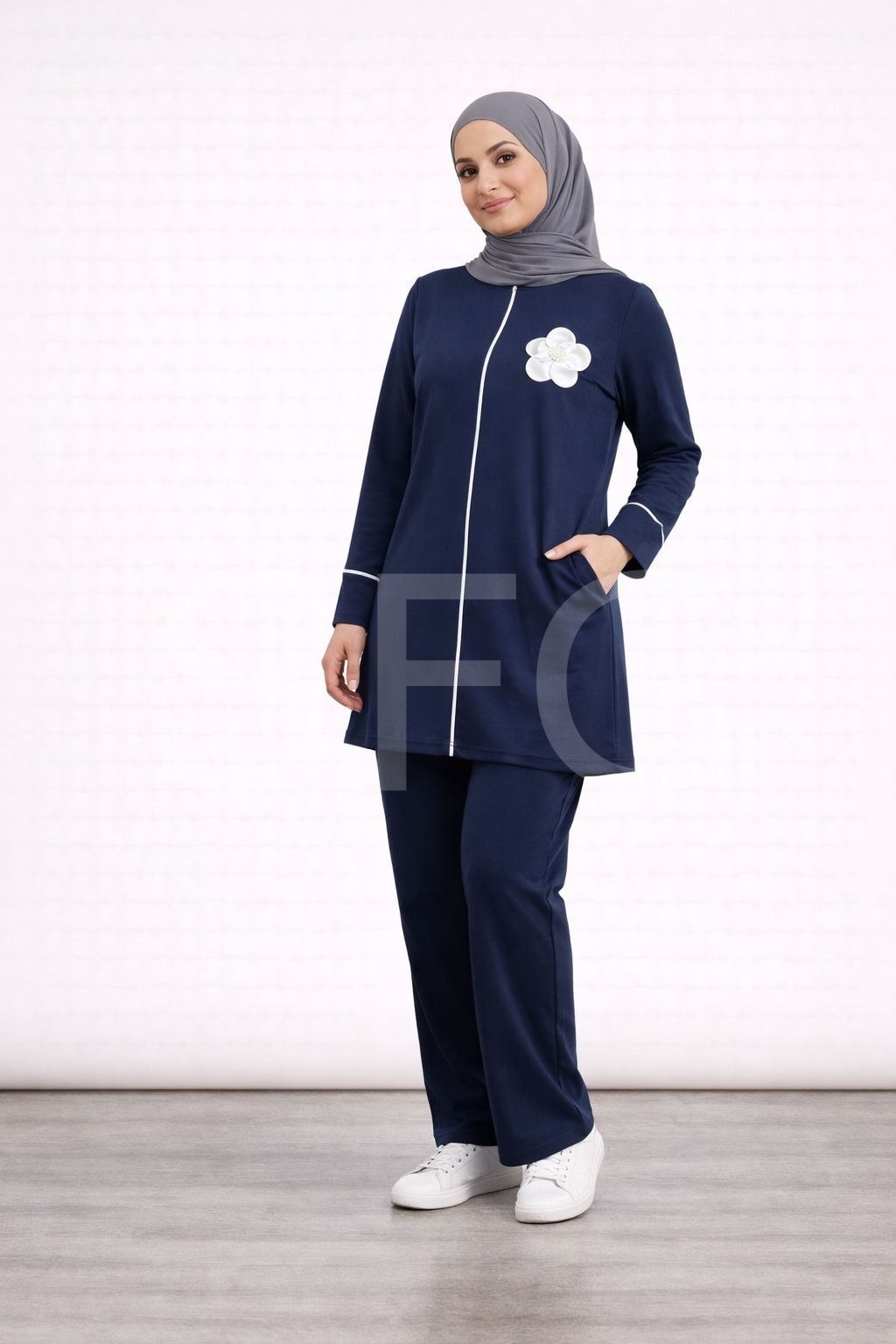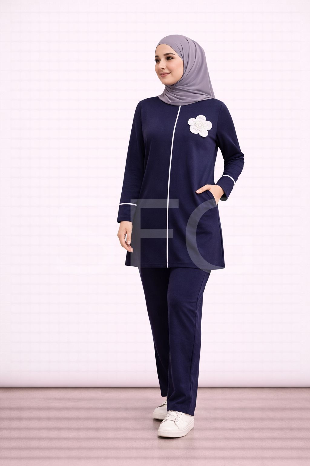 - Zarif ön çiçek detaylarıyla göz alıcı bir görünüm sunar.; - Tesettür giyim standartlarına uygun, şık ve modern tasarım.; - Tunik ve pantolon olmak üzere iki parçadan oluşan takım, kolay kombin imkanı sağlar.; - Rahat kesimiyle gün boyu konforlu bir kullanım sunar.; - Kaliteli kumaşı sayesinde uzun ömürlü ve dayanıklıdır.;