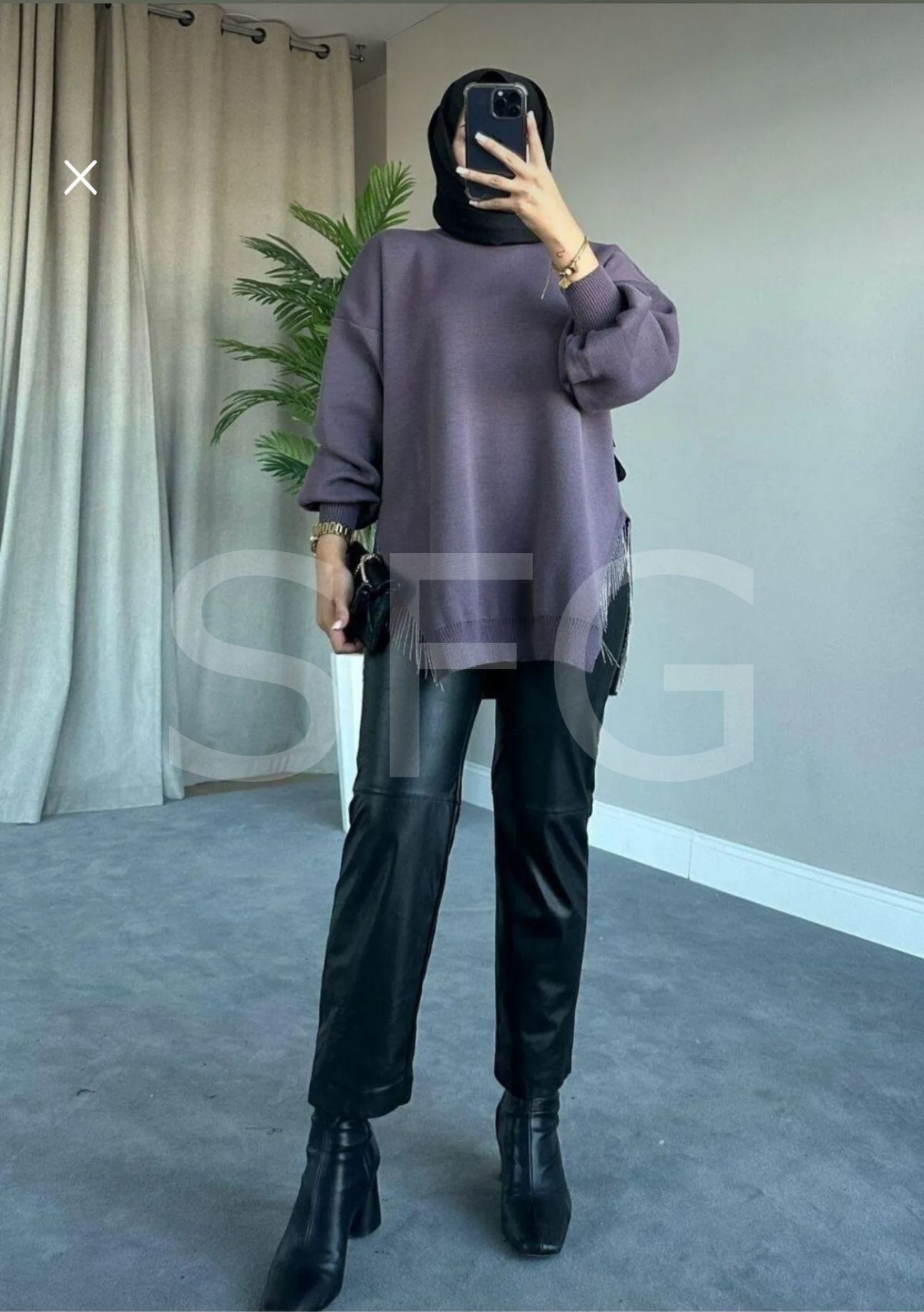 - Rahat kesimi ile günlük kullanıma uygun, oversize triko tunik. - Bisiklet yakası sayesinde modern ve şık bir görünüm sunar. - Yırtmaç detayı ile hareket özgürlüğü sağlar ve stil sahibi bir dokunuş katar. - Uzun kolları ve balon kol tasarımıyla mevsim geçişlerinde ideal konfor sunar. - Tesettür giyim koleksiyonuna özel olarak tasarlanmış, zarif ve rahat bir seçenektir. - Sade düz deseniyle her türlü kombinle uyum sağlayarak zamansız bir tarz oluşturur. - Recycle+Organik materyallerden üretilmiş olup sürdürülebilir moda anlayışını destekler. - Cool & comfort persona'ya hitap eden tasarım; hem rahatlık hem de şıklığı bir arada sunar. - Maksimum 30 derecede yıkama imkanı sayesinde kolay bakım avantajına sahiptir. - Standart bedeniyle geniş kullanıcı kitlesine hitap ederken, tunik siluetiyle farklılık yaratır. - Triko görünümlü dokusuyla yumuşak dokunuş hissi verirken dayanıklılığı arttırır.