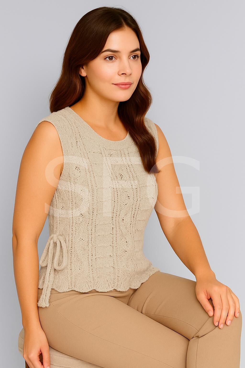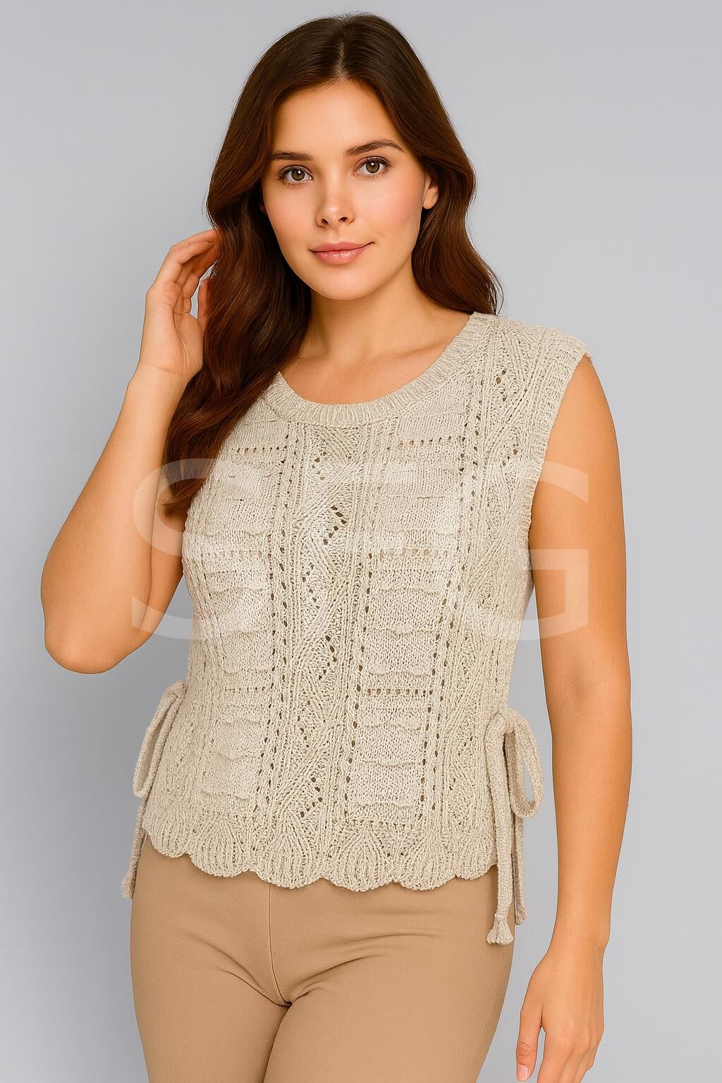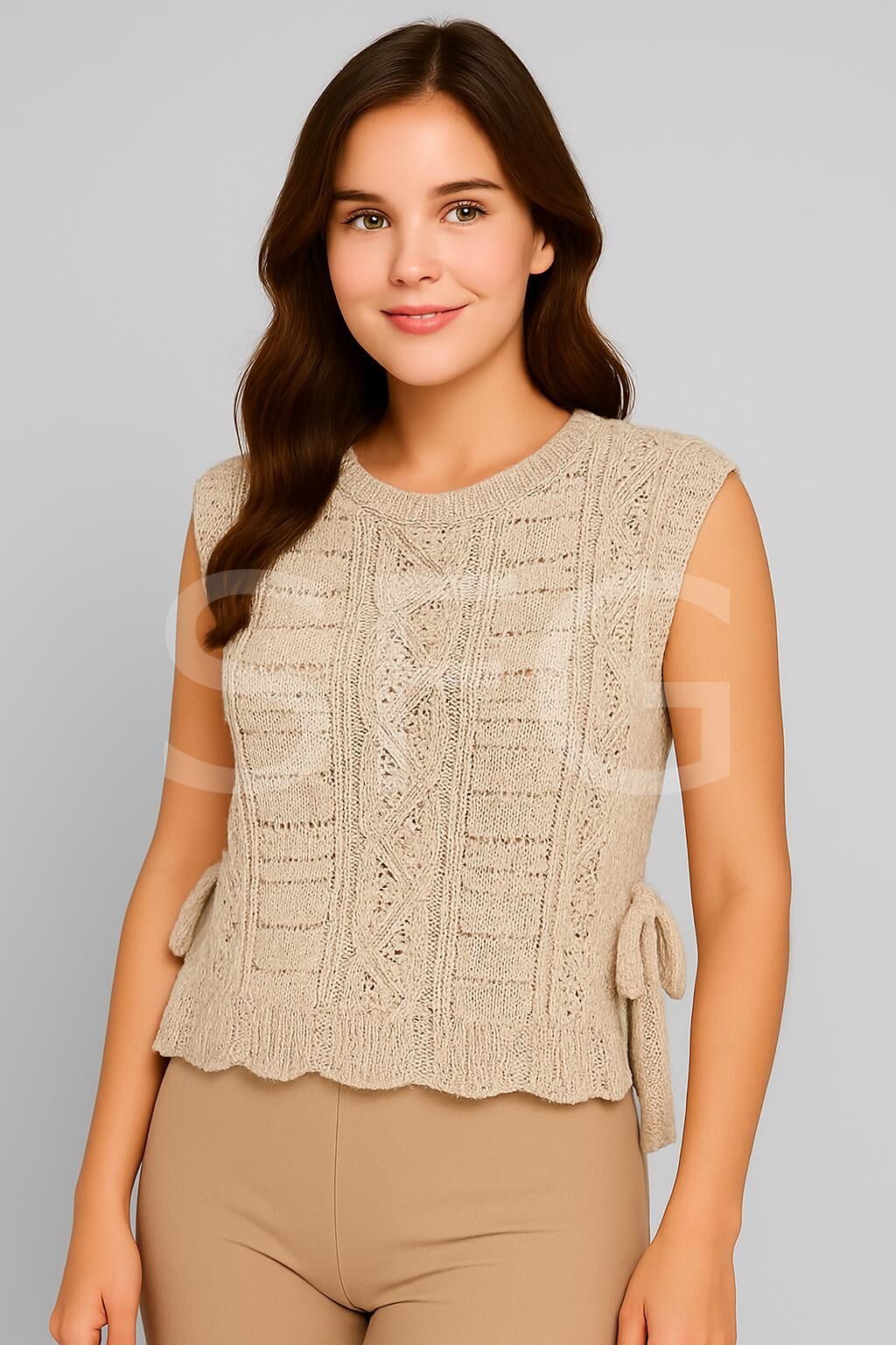 - Sürdürülebilirlik detayına sahip bu süveter, çevre dostu malzemelerden üretilmiştir.; - Dokuma detayları ile zenginleştirilmiş tasarımı, şıklığı ve konforu bir arada sunar.; - Bağcıklı kapama şekli sayesinde kolayca giyilip çıkarılabilir ve kişisel tarzınıza göre ayarlama imkanı sağlar.; - Pamuk materyali cildinizle dost dokunuşlar sunarken, örgü dokusuyla sıcak tutma özelliği de ekler.; - Bağlama veya bağcık detayı ile farklı kombin seçenekleri oluşturmanıza olanak tanır.; - Crop silueti modern ve dinamik bir görünüm kazandırırken, kısa / mini boyu hareket özgürlüğü sağlar.; - Cepsiz tasarımı pratik kullanım sunarken, kemersiz oluşu minimalist çizgileri ön plana çıkarır.; - Tüm sezonlarda rahatlıkla tercih edebileceğiniz basic koleksiyon parçasıdır; her gardıropta temel bir parça haline gelir.; - Maksimum 30 °'de yıkama talimatına uygun şekilde bakımı yapıldığında uzun süre ilk günkü formunu korur.; - Cool & comfort persona ile günlük kullanım için idealdir; hem şık hem de konforlu anlar yaşamanızı sağlar.; - İpliği boyalı üretim yöntemi sayesinde renk canlılığı uzun süre solmaz ve dayanıklılık arttırılır.; - Askılı kol tipi yaz ayları için serinlik katarken, saç örgü deseniyle göz alıcı detaylar ekler.; - Genç yaş grubuna hitap eden bu süveterle trendleri yakalamanın keyfini çıkarabilirsiniz.; - Triko kumaşı yumuşak dokusuyla gün boyu konforlu hissetmenizi garanti ederken, pamuklu içeriği cilt dostudur.; - TR menşei ile yerel üretim avantajlarından faydalanarak sürdürülebilir moda anlayışını desteklersiniz.; - Hem kadın hem de kız kullanıcılar için uygun tasarım seçenekleri mevcuttur; herkes için idealdir.; - Orta kalınlıkta yapısıyla mevsim geçişlerinde ideal sıcaklık dengesi sunar.; - Casual/günlük ortamlarda rahatlıkla tercih edilebilen bu parça, günlük stilinizi tamamlar.; - Bisiklet yaka kesimi modern çizgilere sahipken aynı zamanda rahatlık sunar.