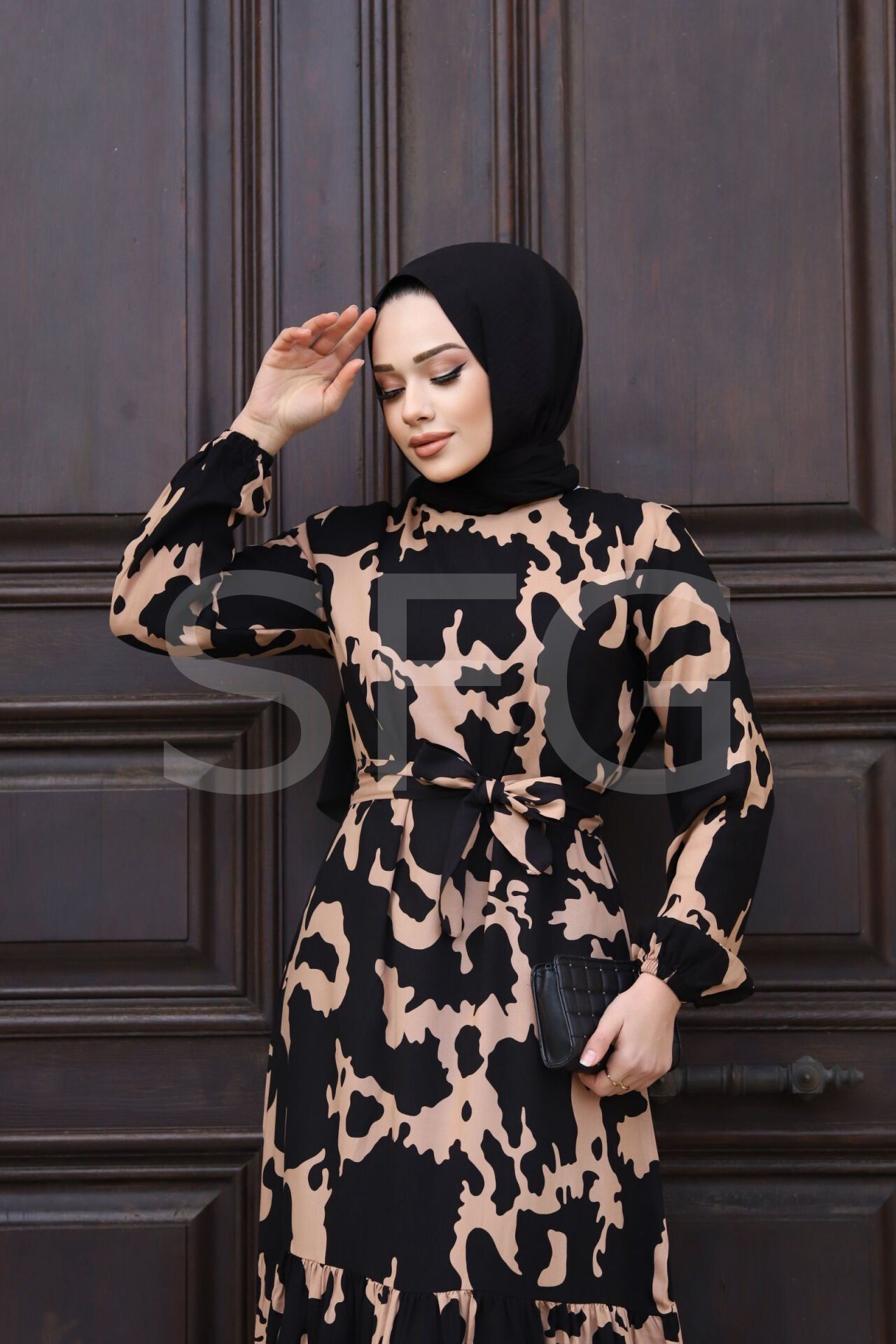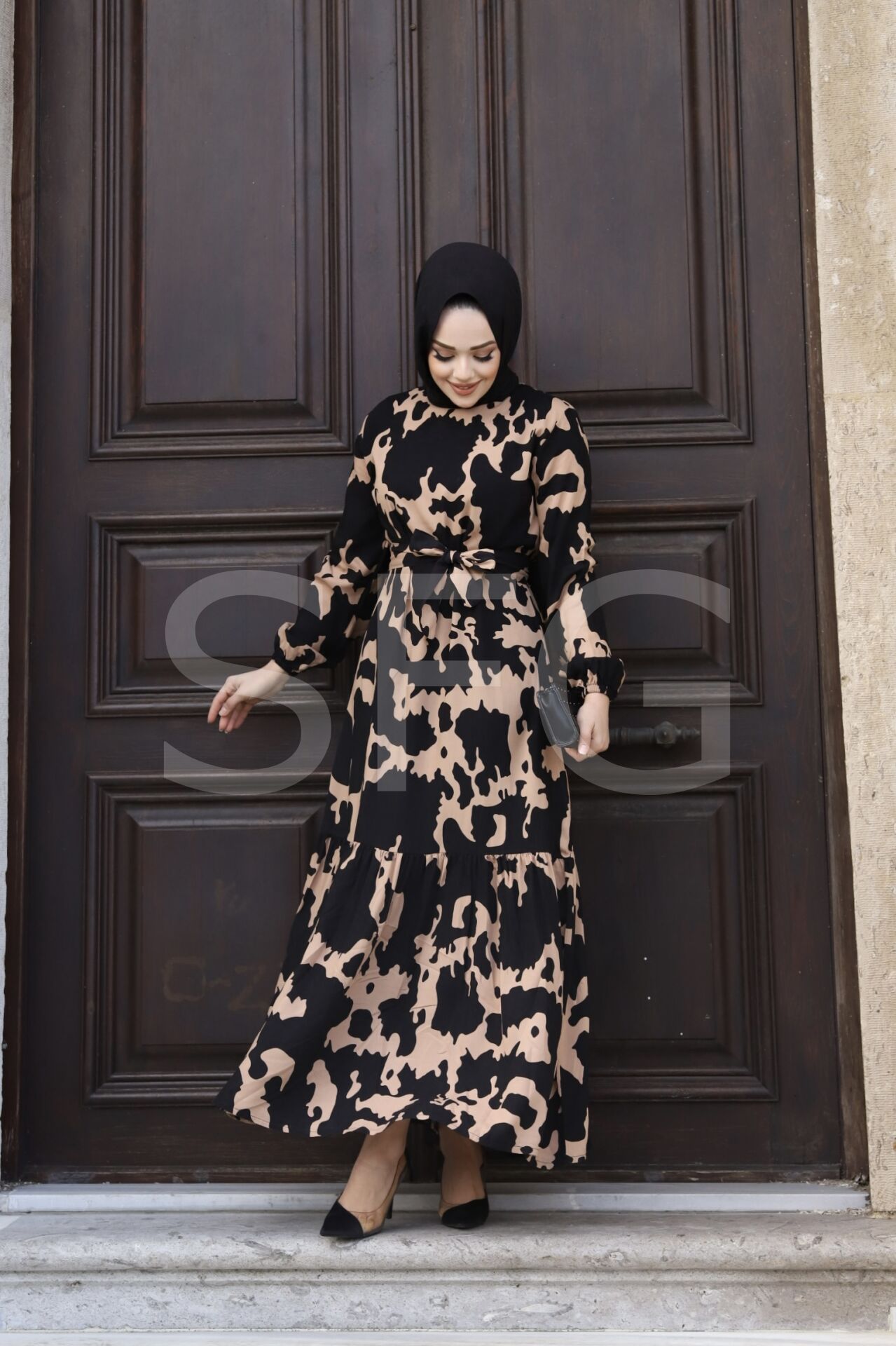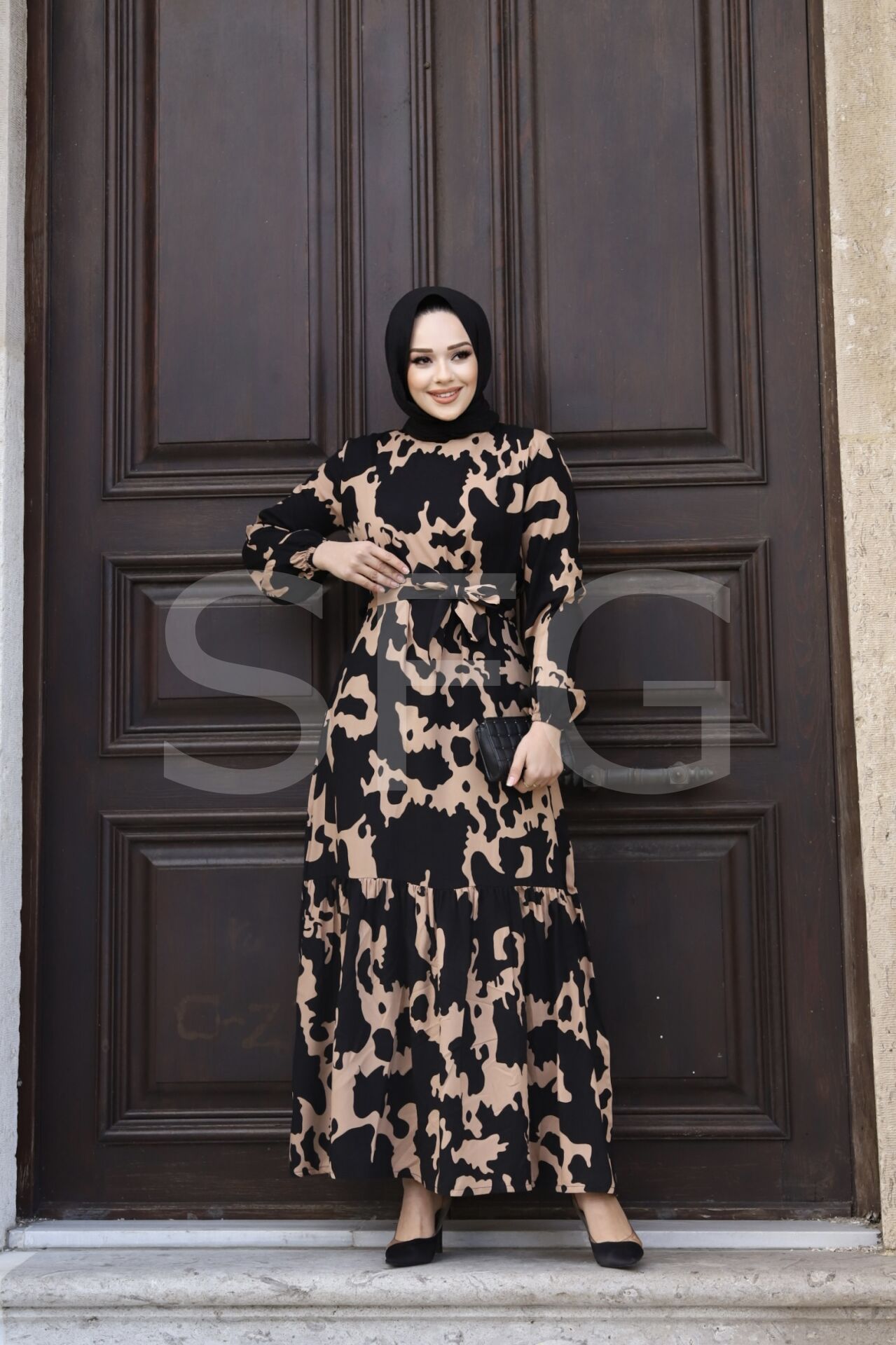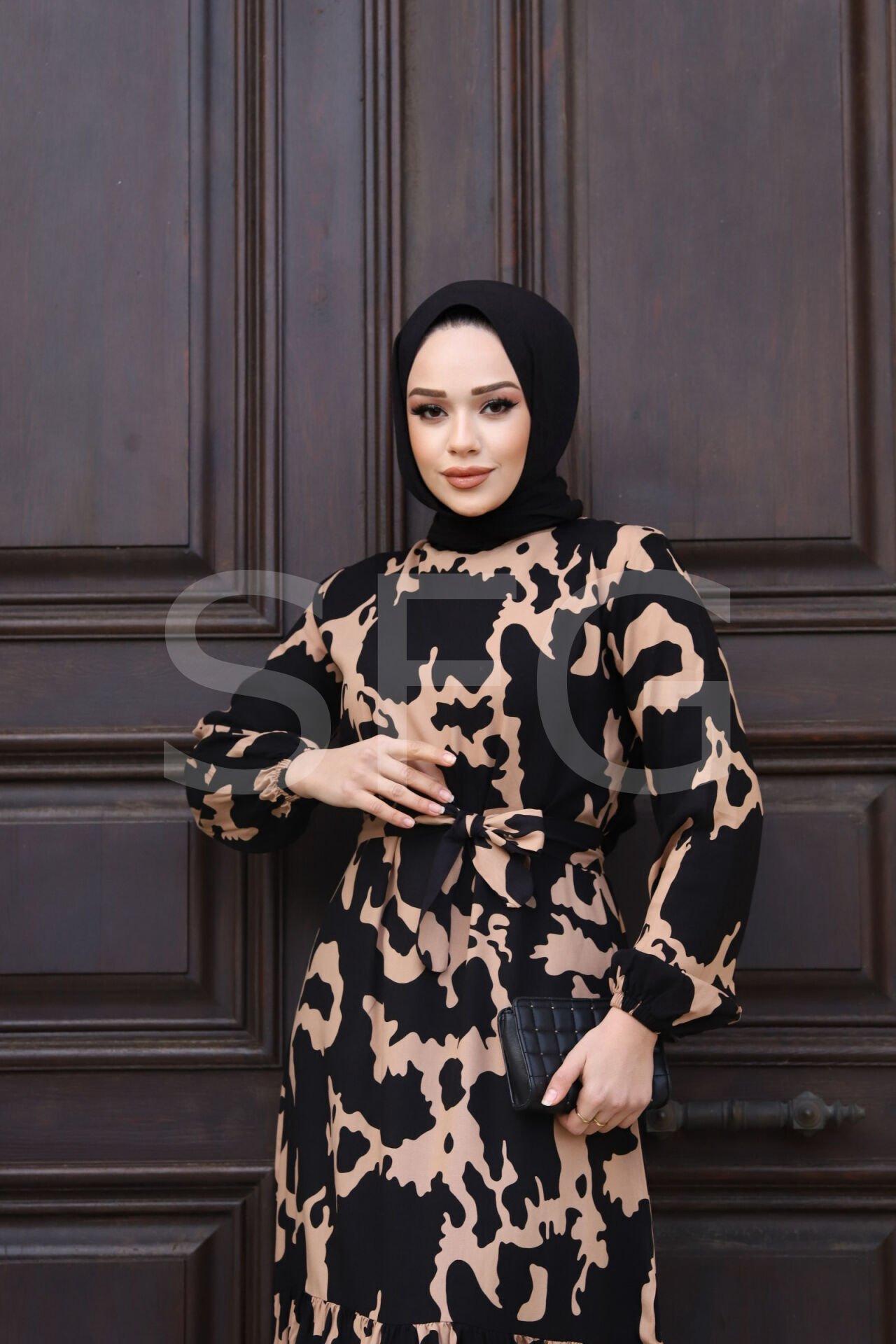 Her yaş grubuna hitap eden tasarımıyla, geniş bir kullanıcı yelpazesine sahip olan bu elbise, herkesin gardırobunda yerini almayı başarır; Bisiklet yaka kesimi ile modern ve şık bir görünüm sunar, günlük kullanımda rahatlıkla tercih edilebilir; Uzun kollu tasarımı sayesinde mevsim geçişlerinde ve serin havalarda ideal koruma sağlar; Viskon materyali ile hafif ve nefes alabilen yapısı, gün boyu konforlu bir kullanım sunar; Organik malzemelerden üretilmiş olması, sürdürülebilir moda anlayışını benimseyenler için mükemmel bir seçenektir; Gömlek elbise silueti ile hem rahatlığı hem de şıklığı bir arada sunarak günlük kombinlerinizde kolayca yer bulur; Hayvan desenli tasarımıyla dikkat çekici ve trend bir görünüm kazandırırken, iç göstermeyen yapısıyla rahatlık sağlar; Büyük beden kalıbı sayesinde vücut hatlarını saran ancak sıkmayan bir yapıya sahiptir, hareket özgürlüğünüzü kısıtlamaz; Standart kol tipi ile gün içerisinde rahat;