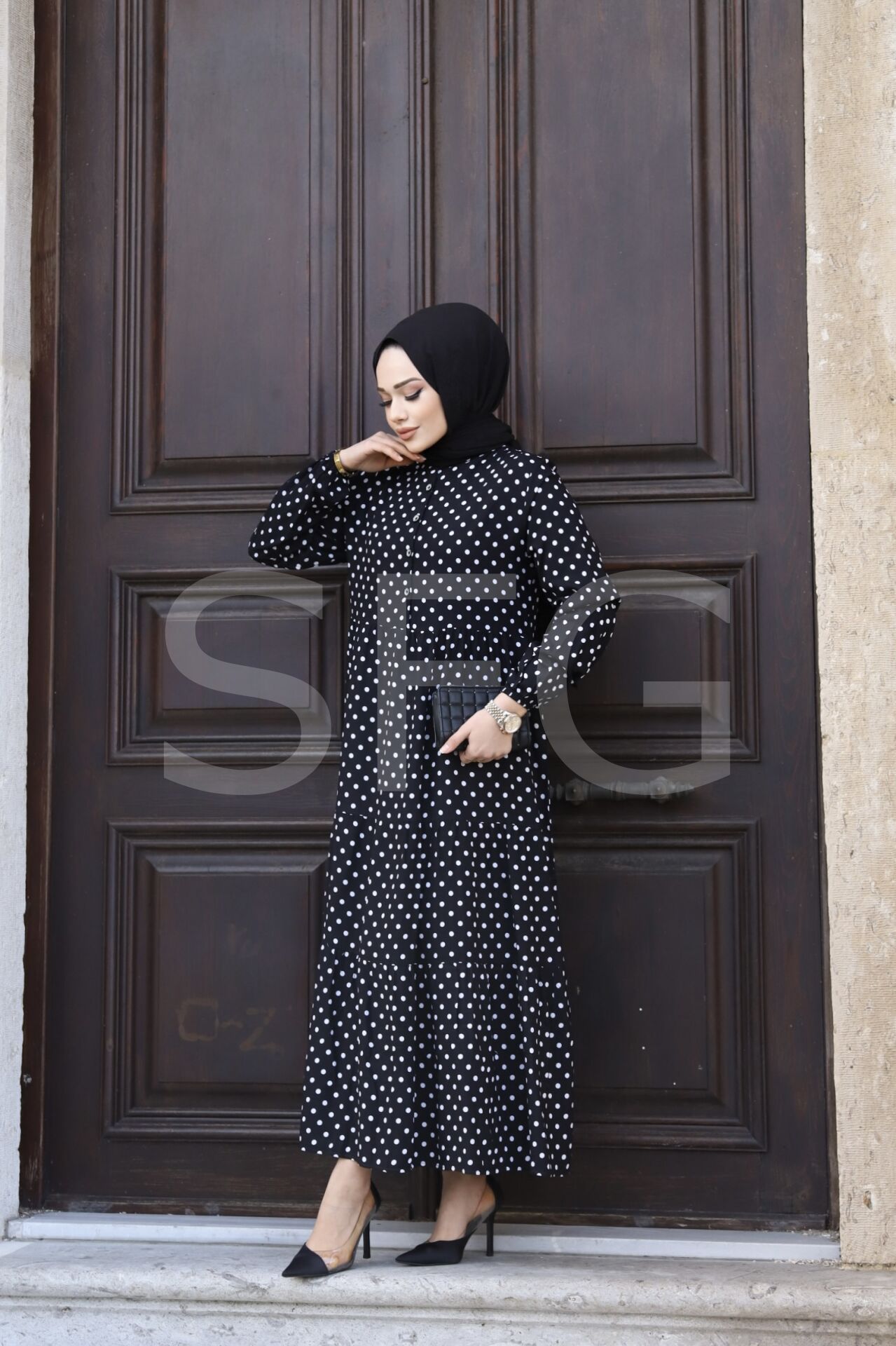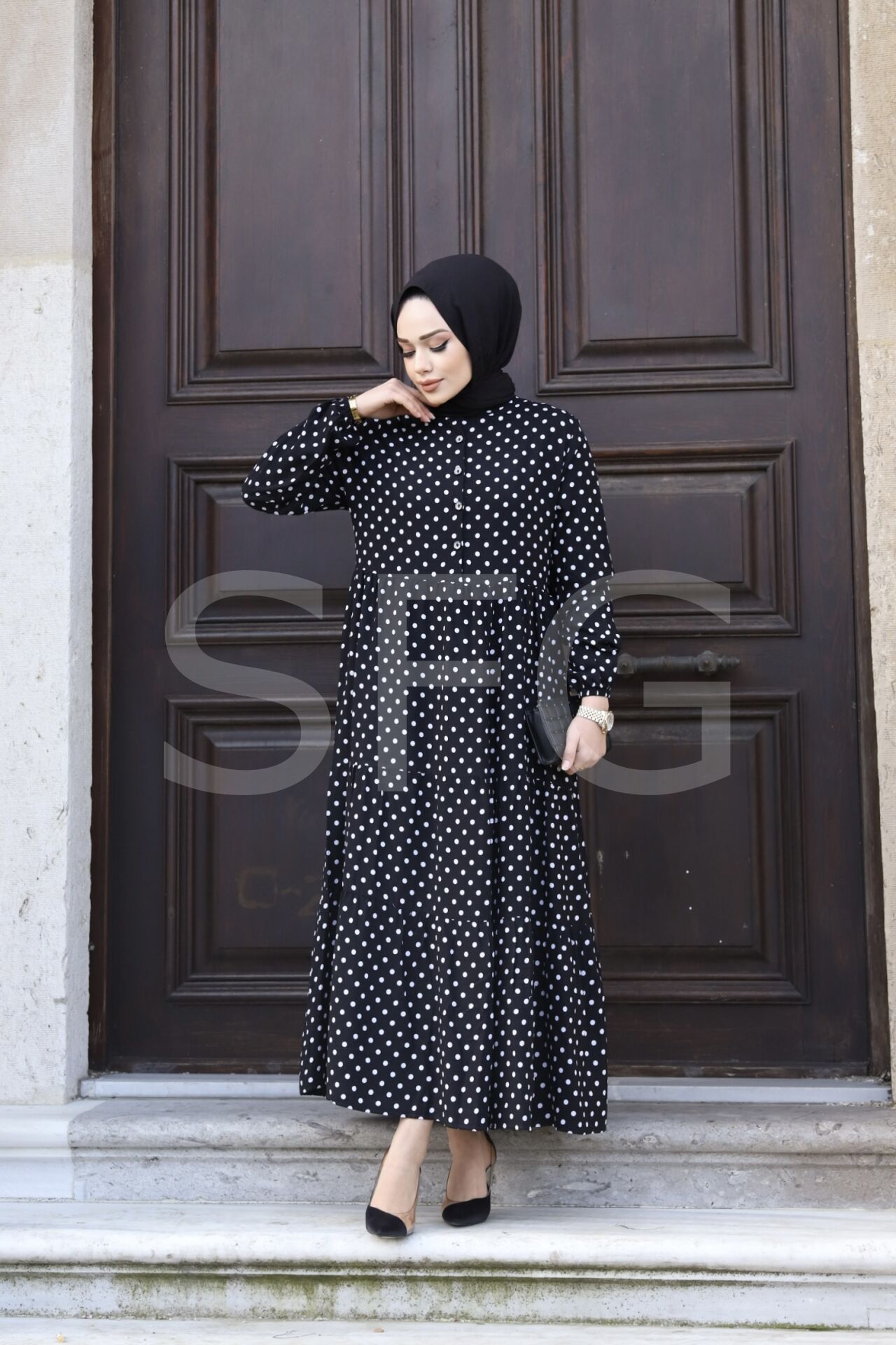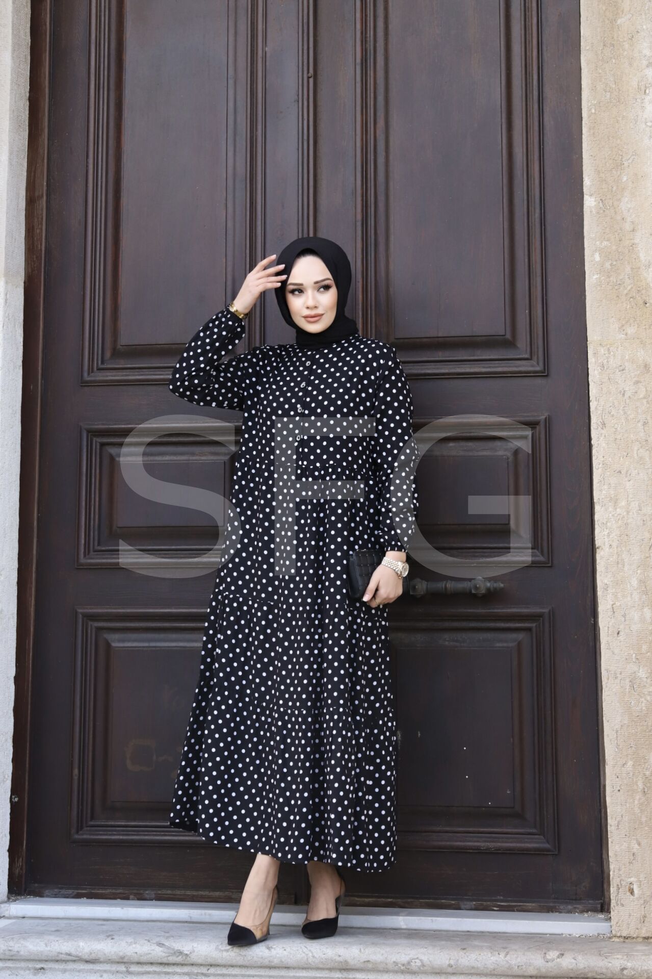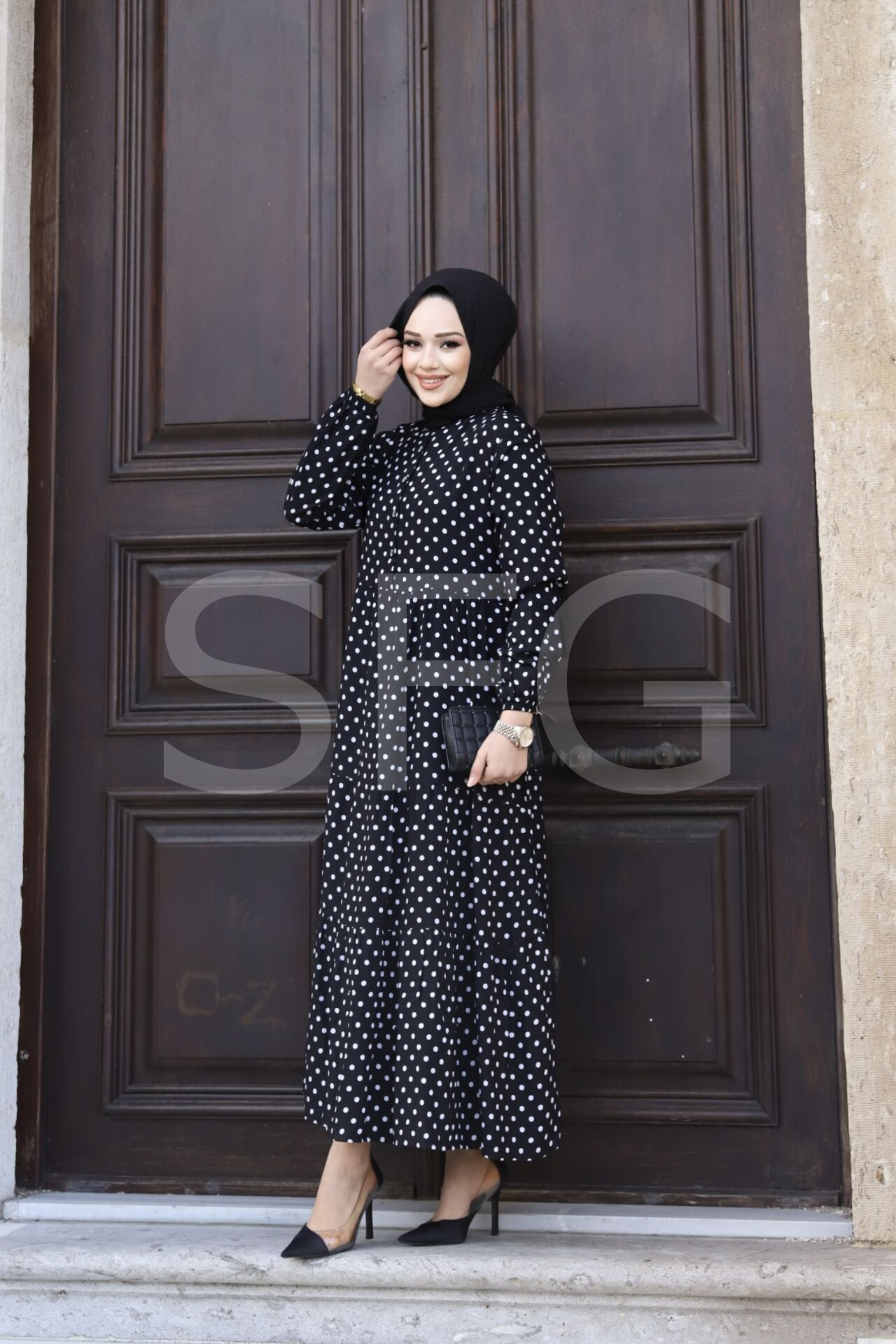 Büyük beden kalıbı ile rahatlık ve şıklığı bir arada sunan gömlek elbise, her vücut tipine uyum sağlar; Puantiyeli deseniyle yaz aylarının enerjisini yansıtan bu elbise, günlük kullanıma uygun casual tarzıyla dikkat çeker; Bisiklet yaka tasarımı sayesinde modern ve sade bir görünüm elde edilirken, standart kol kesimi konforlu bir kullanım sunar; Terryviskon dokuma tipi, hafif ve nefes alabilen yapısıyla yaz günlerinde serinlik sağlar; İç göstermeyen kumaş yapısı ile rahatlıkla hareket etme özgürlüğü verirken, tesettür giyim standartlarına uygunluk gösterir; Organik sürdürülebilirlik detayına sahip olmasıyla çevre dostu bir tercih olanağı sunar; Uzun kollu tasarımı ile mevsim geçişlerinde de ideal bir seçenek olarak öne çıkar; tüm yaş gruplarına hitap eden geniş kullanıcı kitlesi için uygundur; Dokuma kumaş tipi dayanıklılığı arttırarak uzun süreli kullanım imkanı tanırken düğmeli detayları ile şık bir görünüm kazandırır;