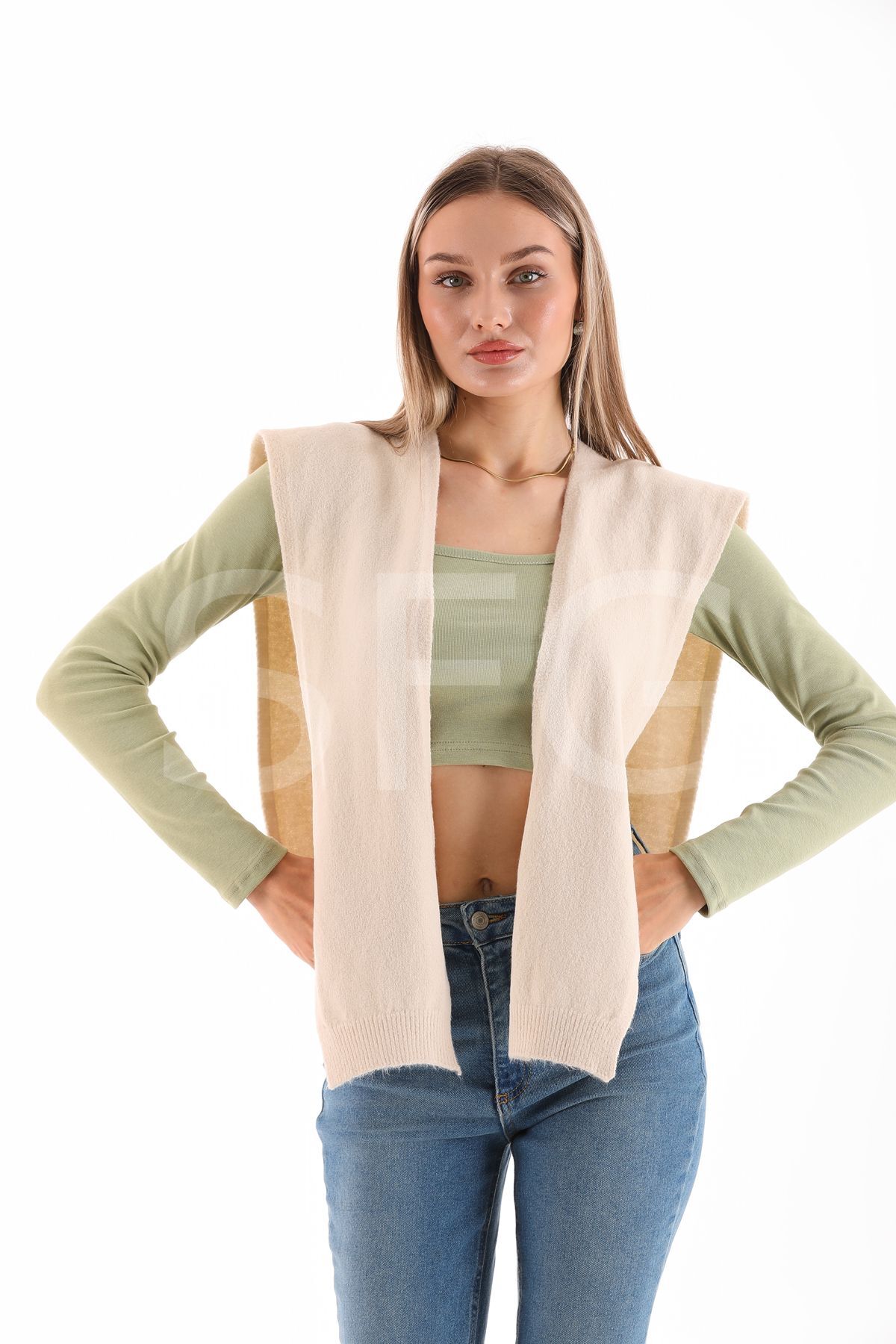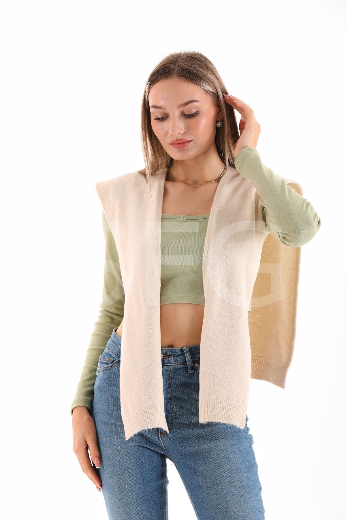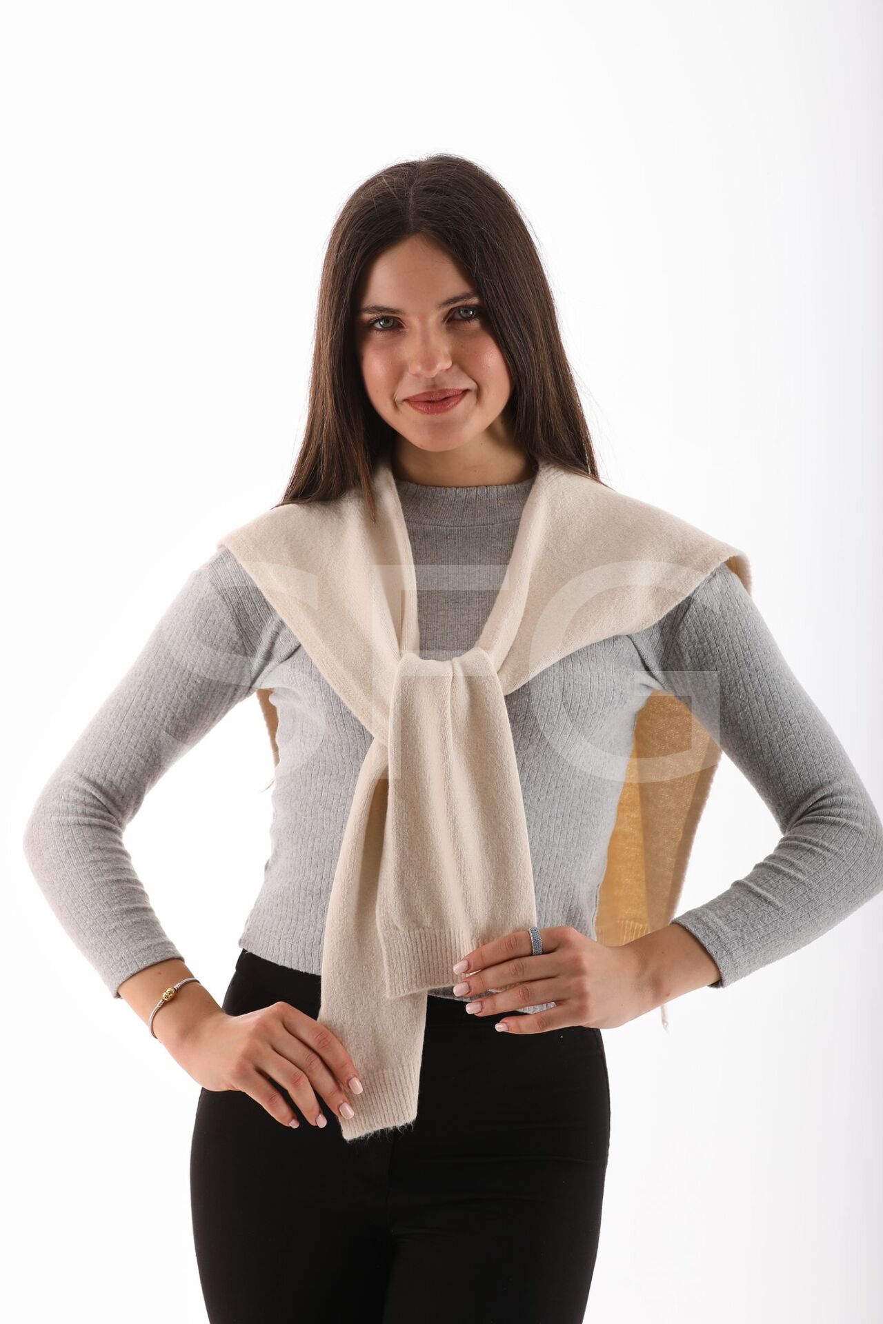 UNİSEX Üst Omuza Gömlek vb. Ürünlerde Kazak Görünümlü Tek Taraflı Triko Ön Bağlamalı Şal Aksesuar(2 ADET)