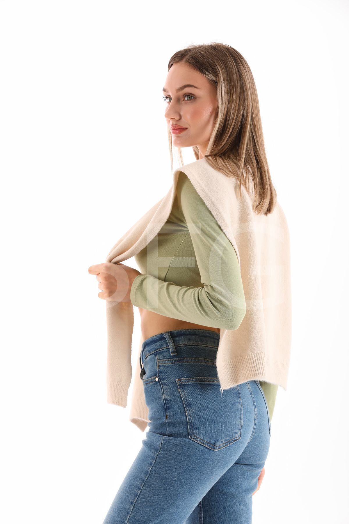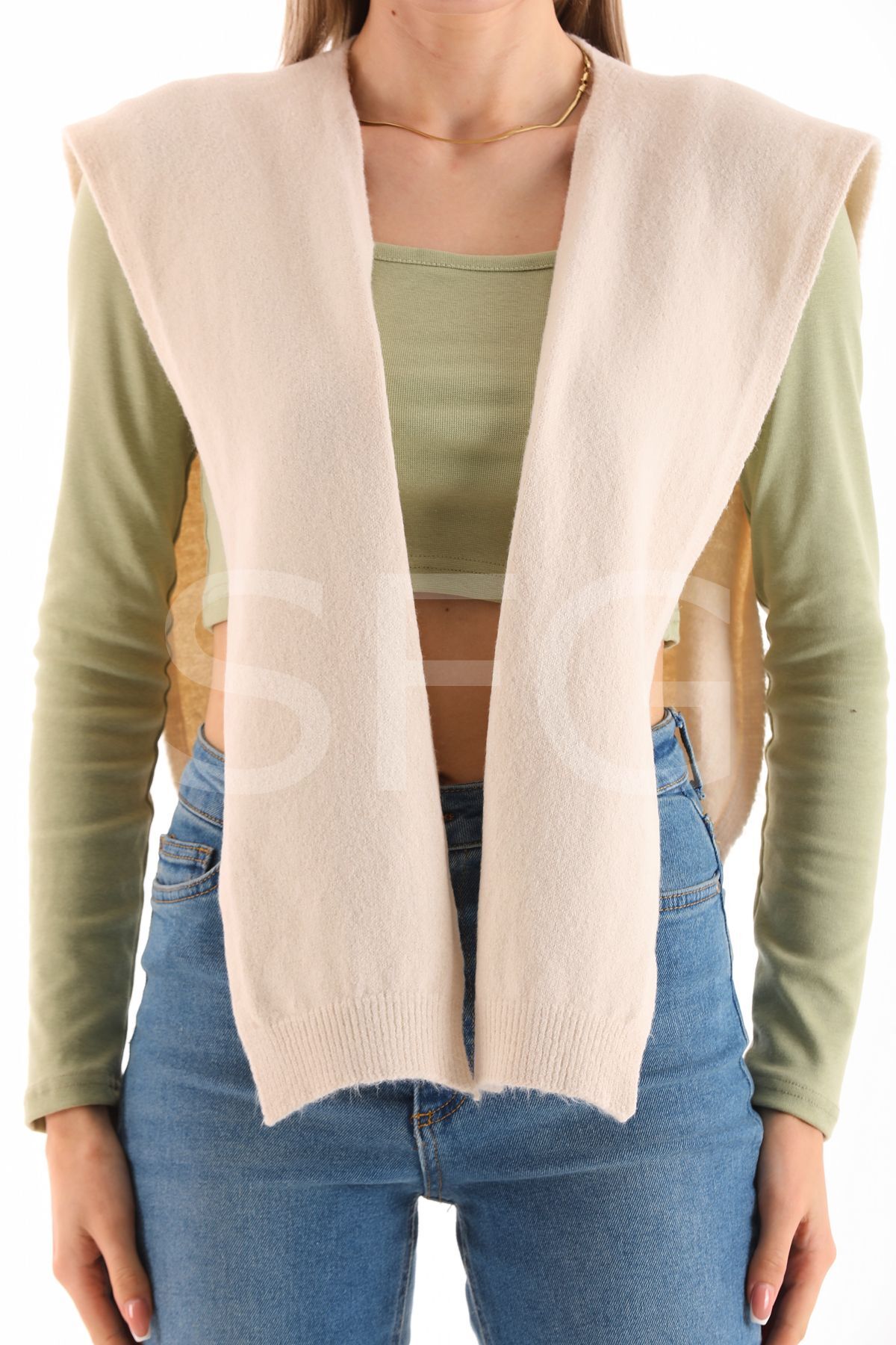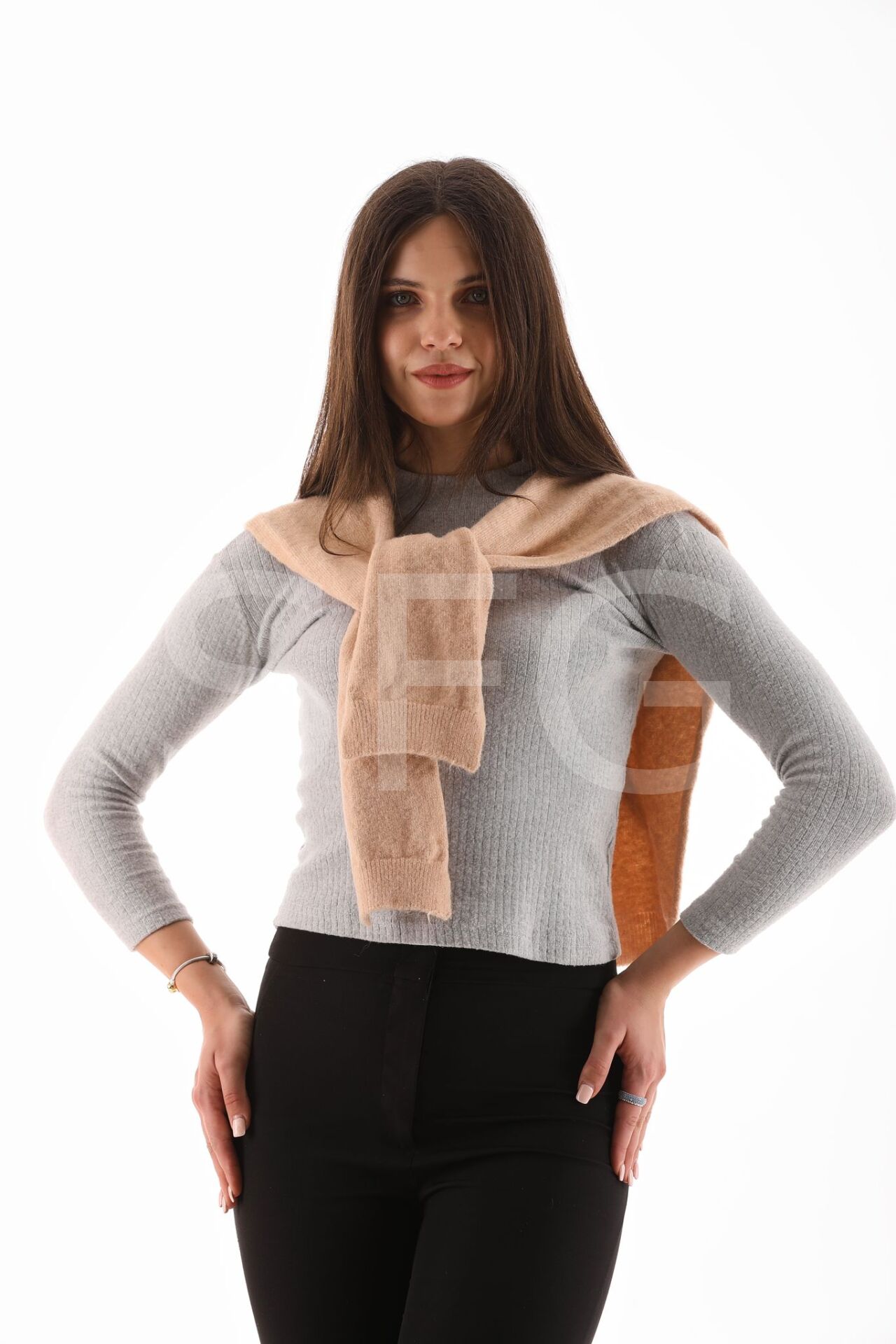 UNİSEX Üst Omuza Gömlek vb. Ürünlerde Kazak Görünümlü Tek Taraflı Triko Ön Bağlamalı Şal Aksesuar(2 ADET)